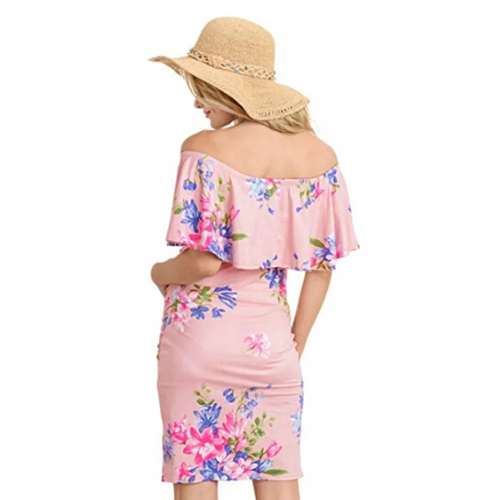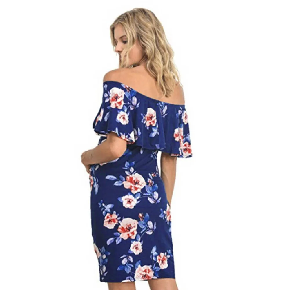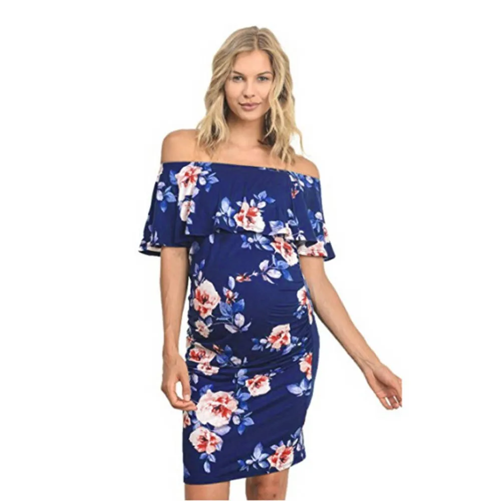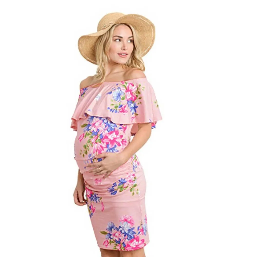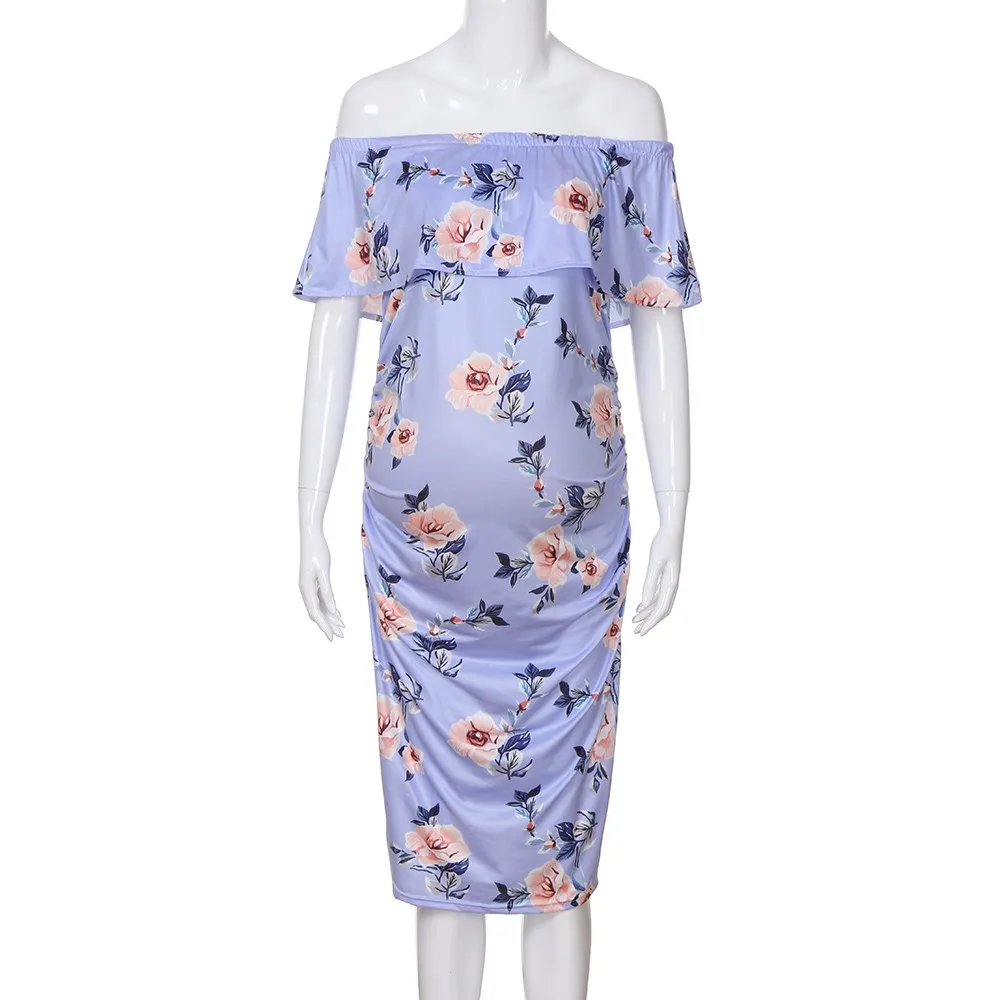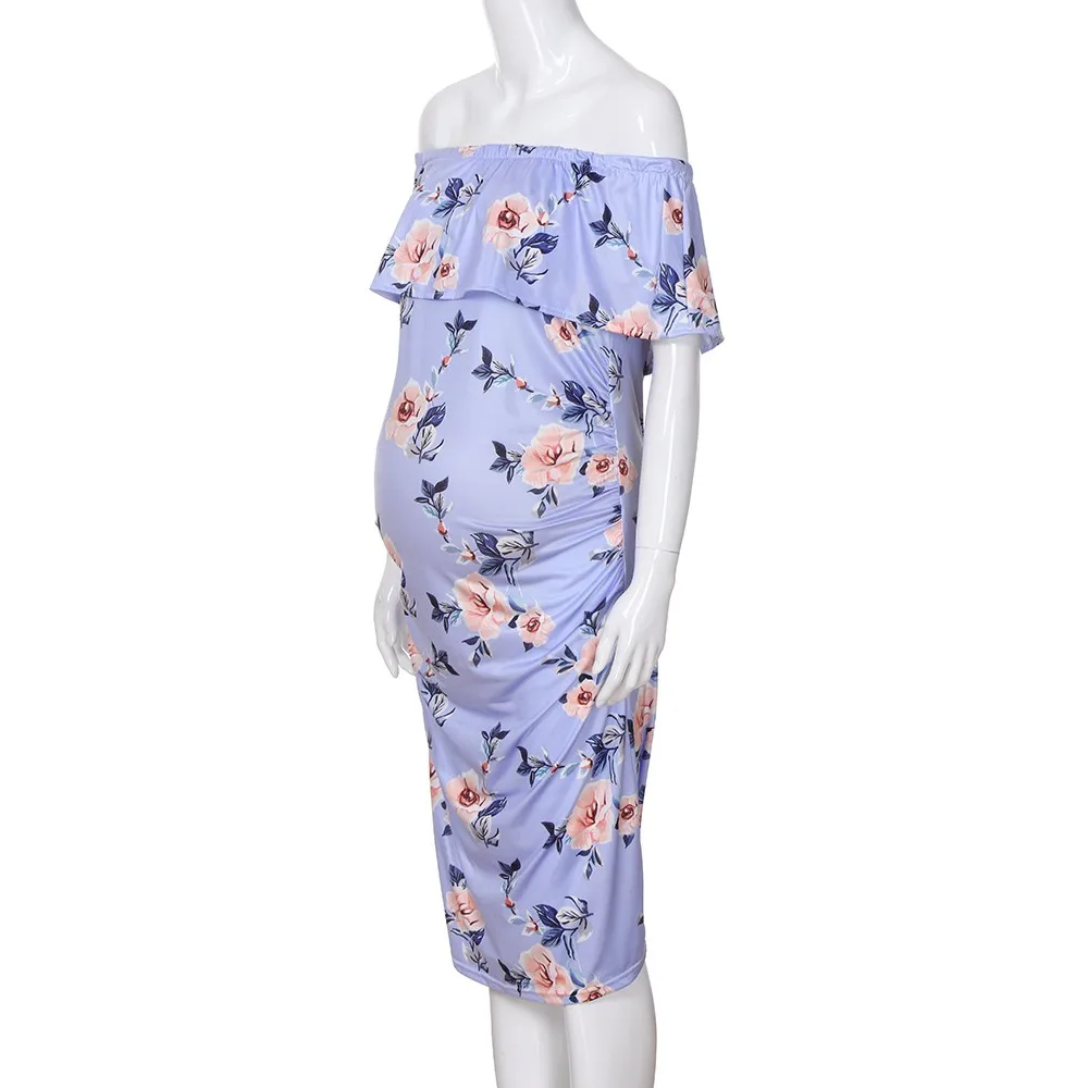 MUQGEW Women’s Pregnant Print Dress Clothes Maternity Photography Props Floral Wrap Long Sundress Dress Summer Pregnancy Dresses
