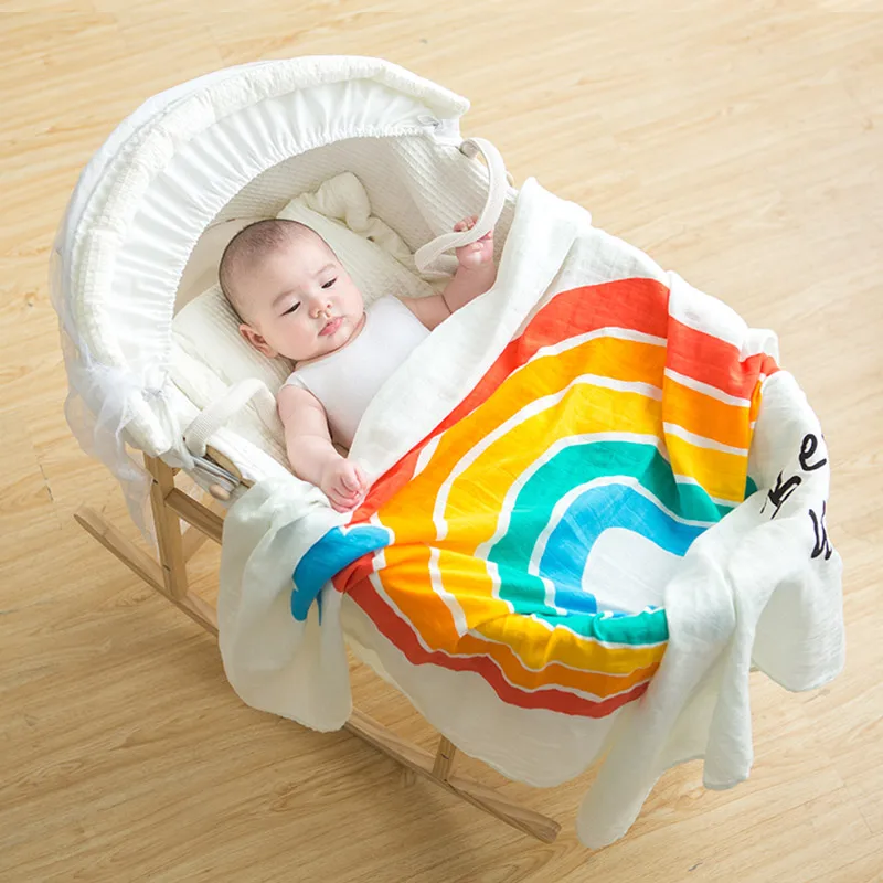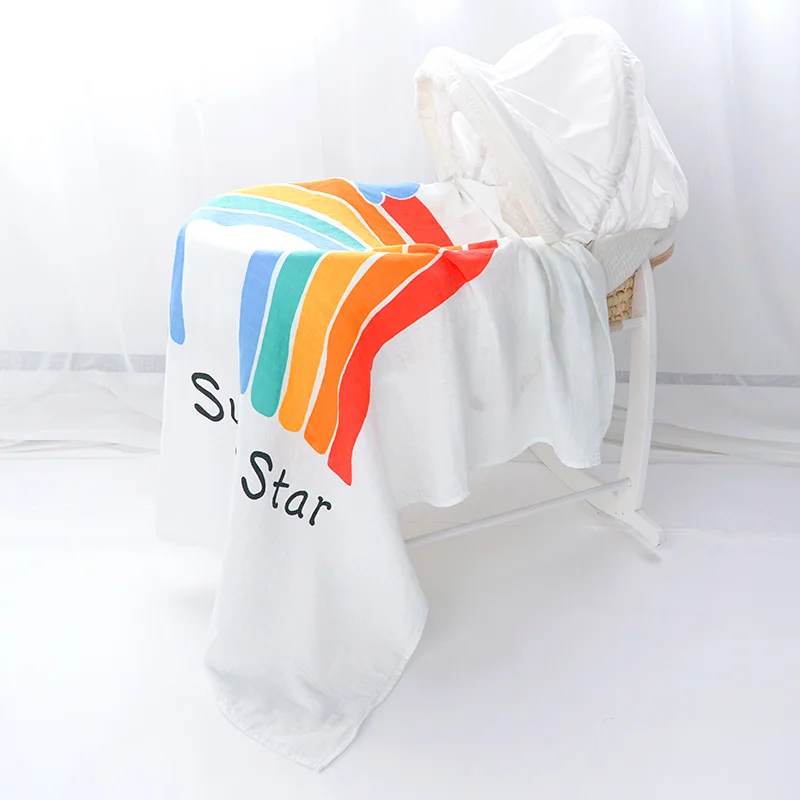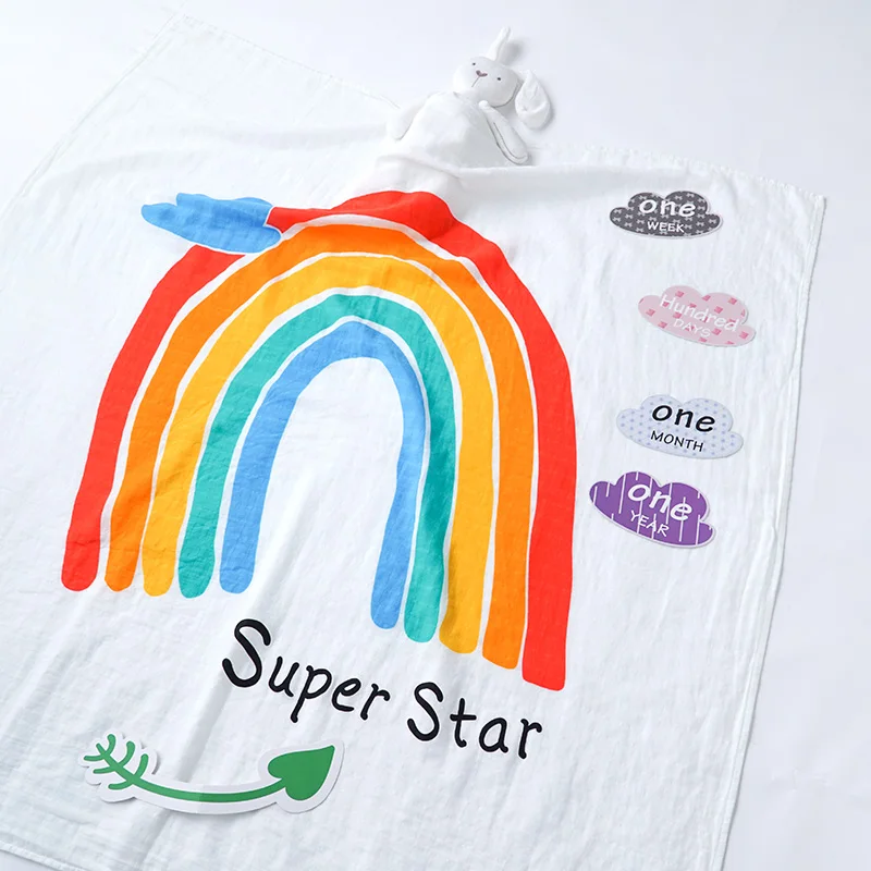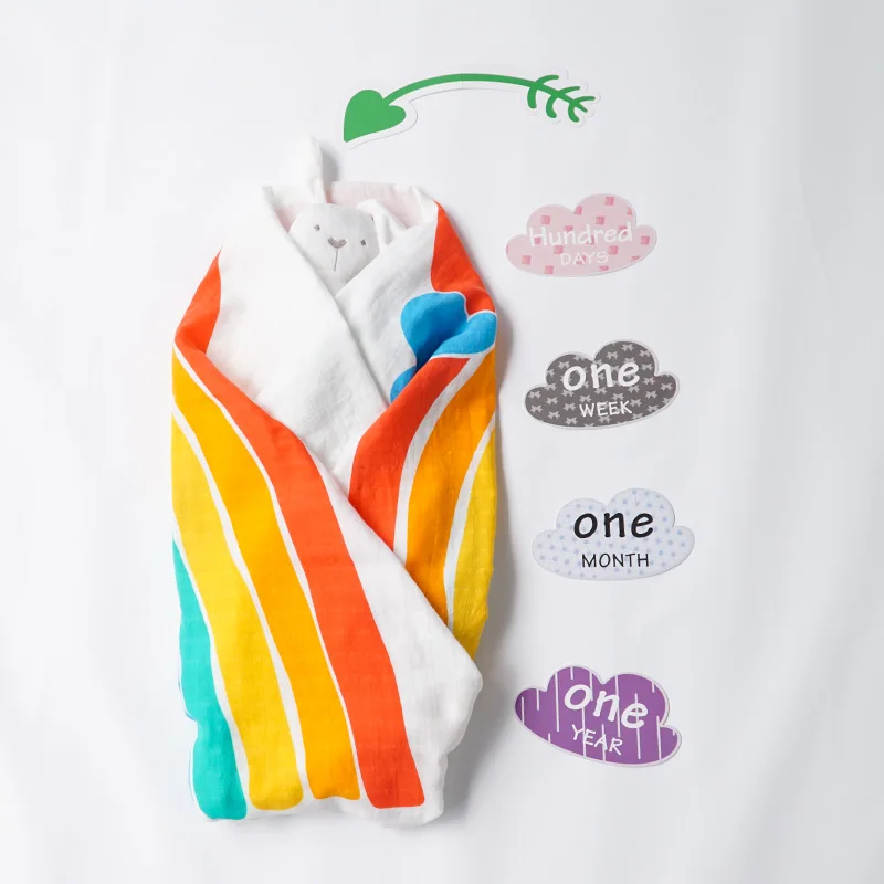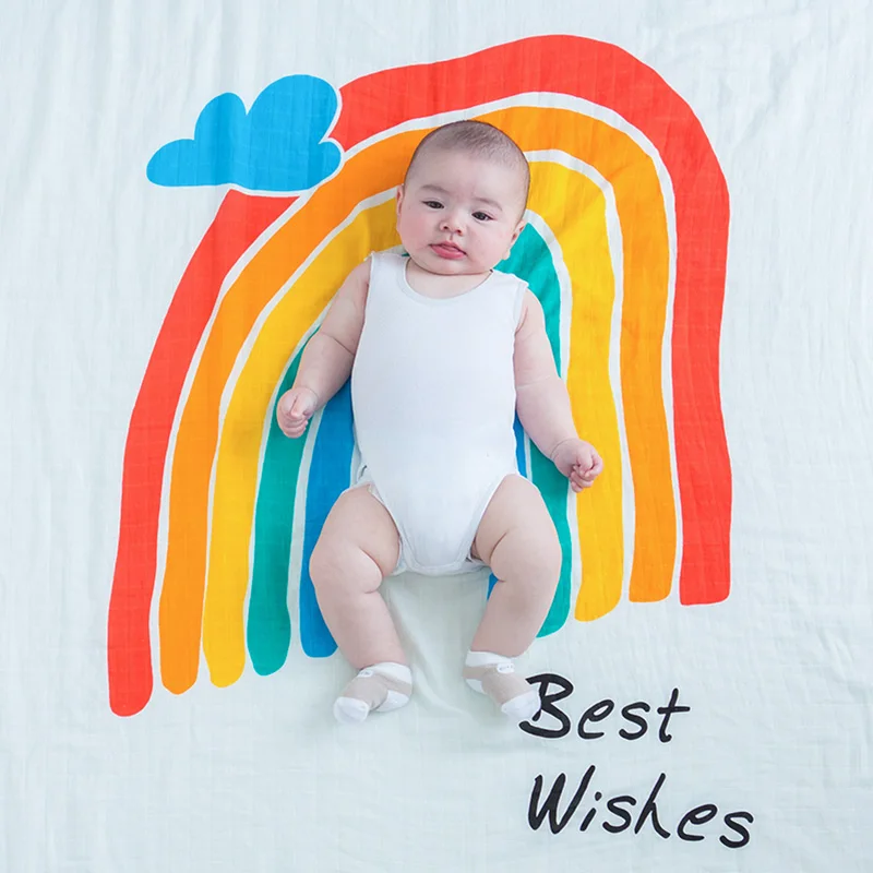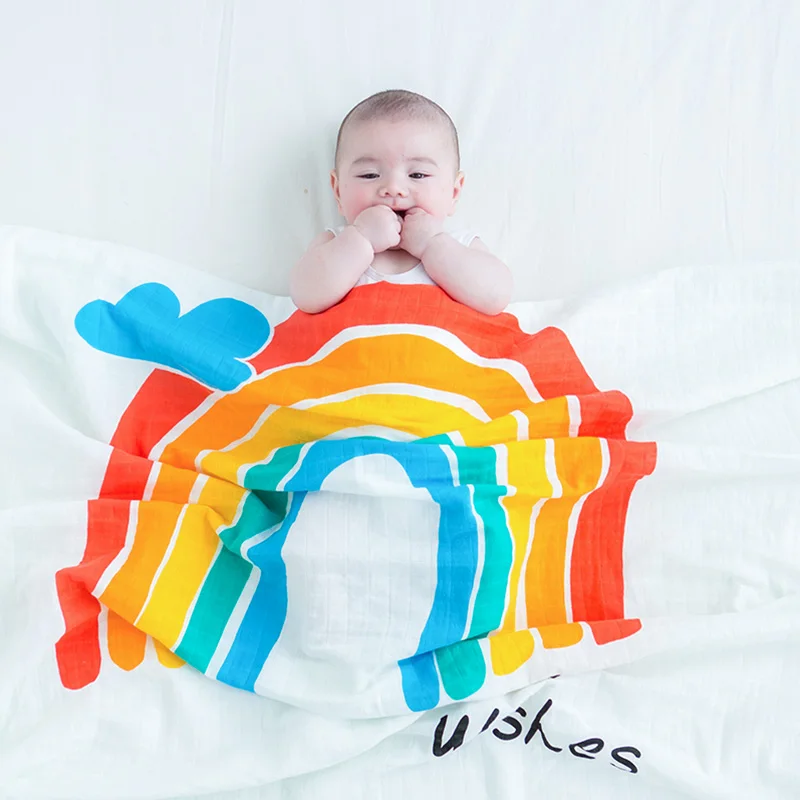 Muslinlife Rainbow 2 layer Muslin Swaddle Blanket Funny Cute Baby Wrap
