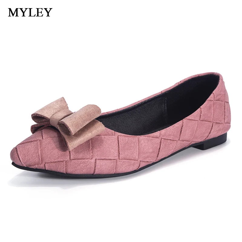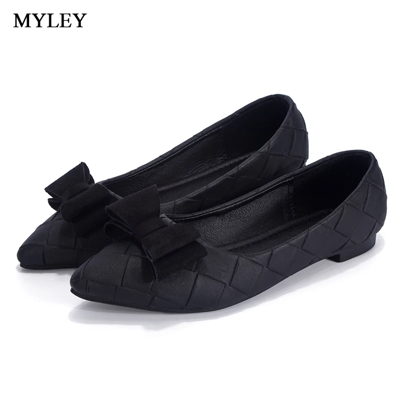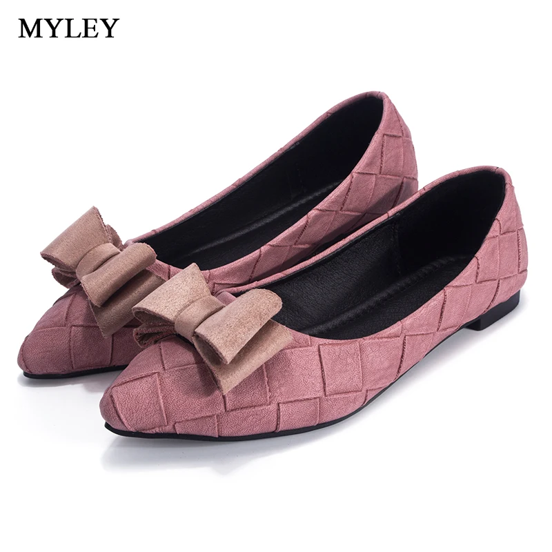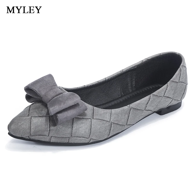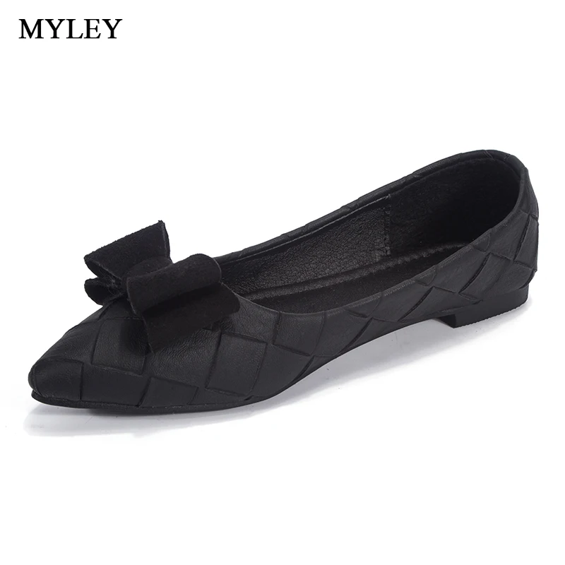 MYLEY 2017 New Fashion Women Casual Flat Pointed Toe Shoes Bowknot Design Comfortable Classic Formal Party Driving Boat Shoes