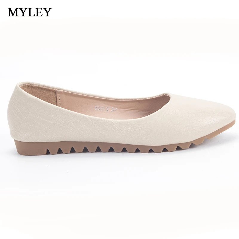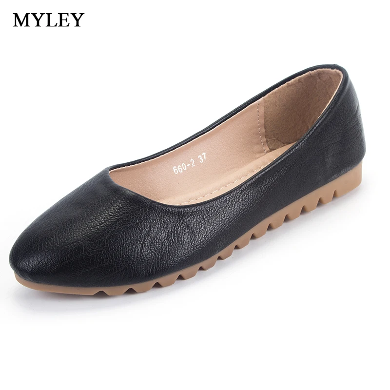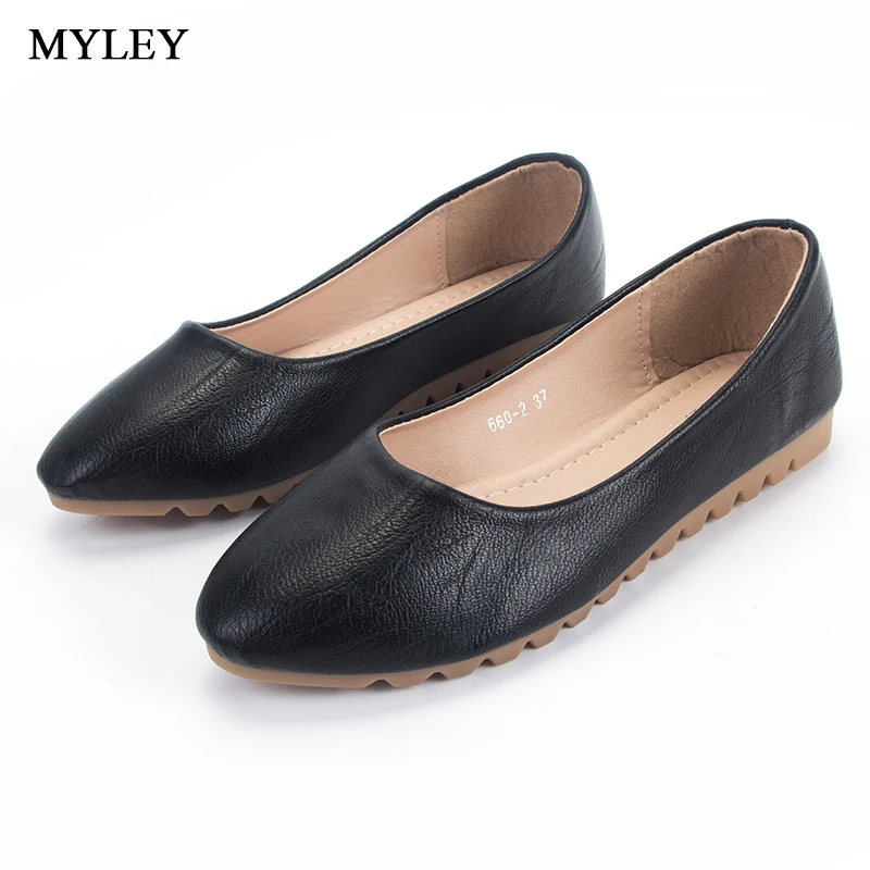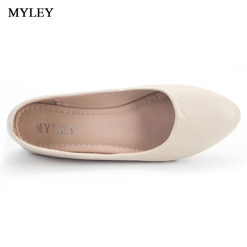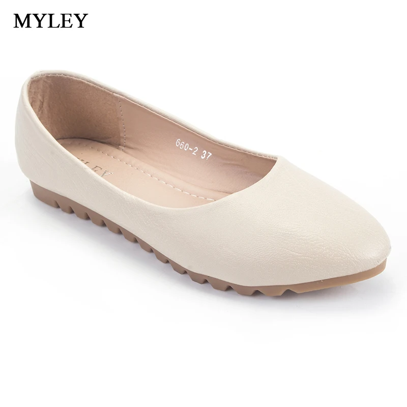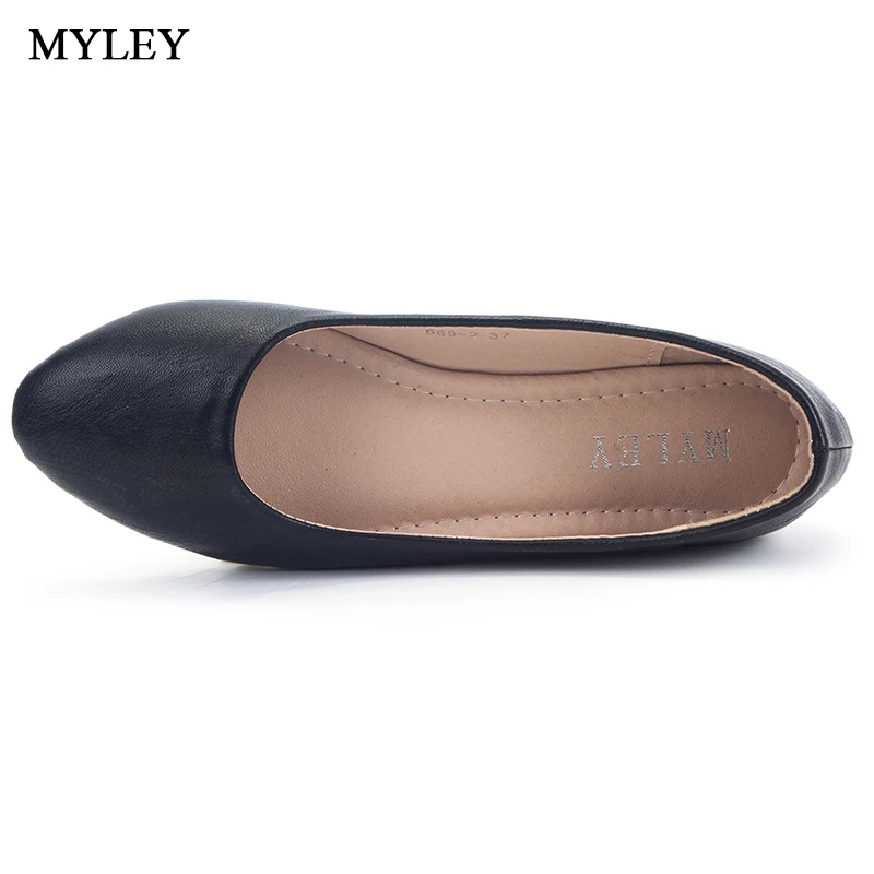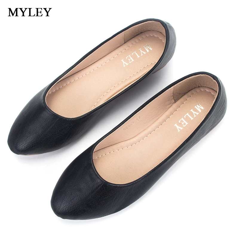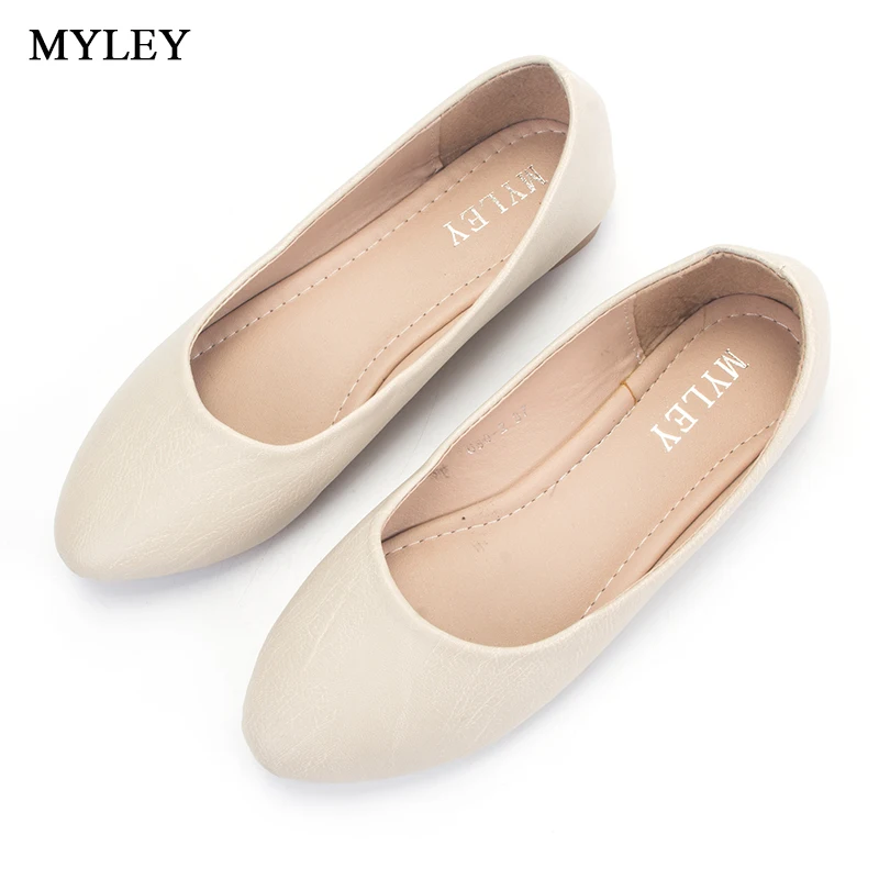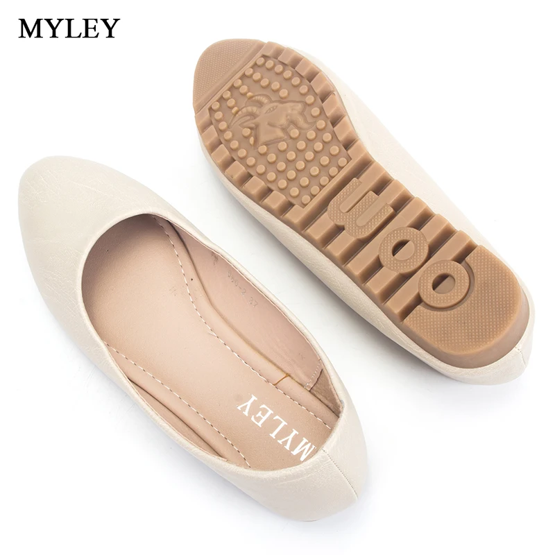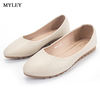 MYLEY Womens Round Toe Flats Shoes Ladies Office Solid Boat Shoes Slip-On Low Heel Black Apricot Shallow Mouth Casual Footwear