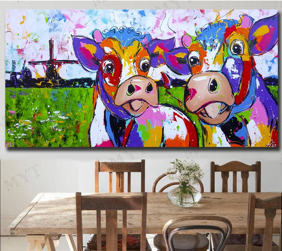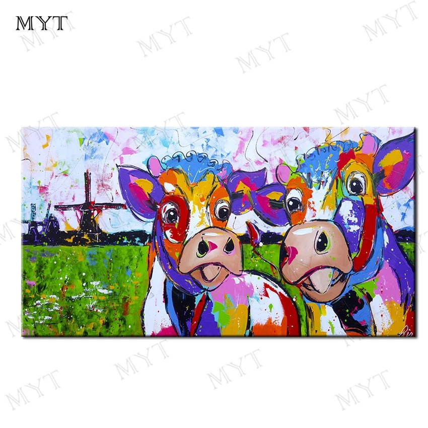 MYT Free Shipping Two Cows Graze In The Pasture Oil Painting Canvas Handpainted Modern Abstract Oil Painting Home Decor Gift