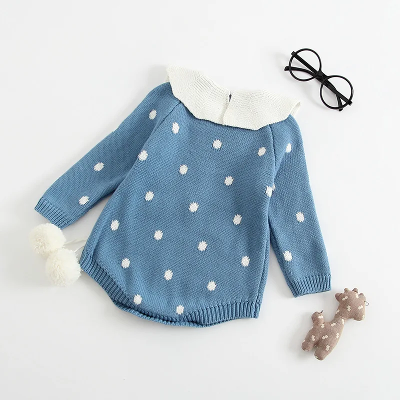 MYUDI – 2018 Newborn Baby Bodysuits Sweater for Girls Infants one-piece Pompom Jumper Children Pullover Lotus Knitted Jumpsuits