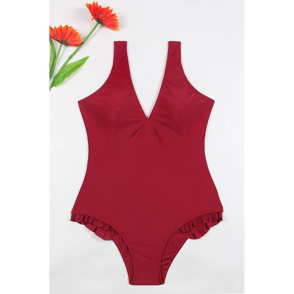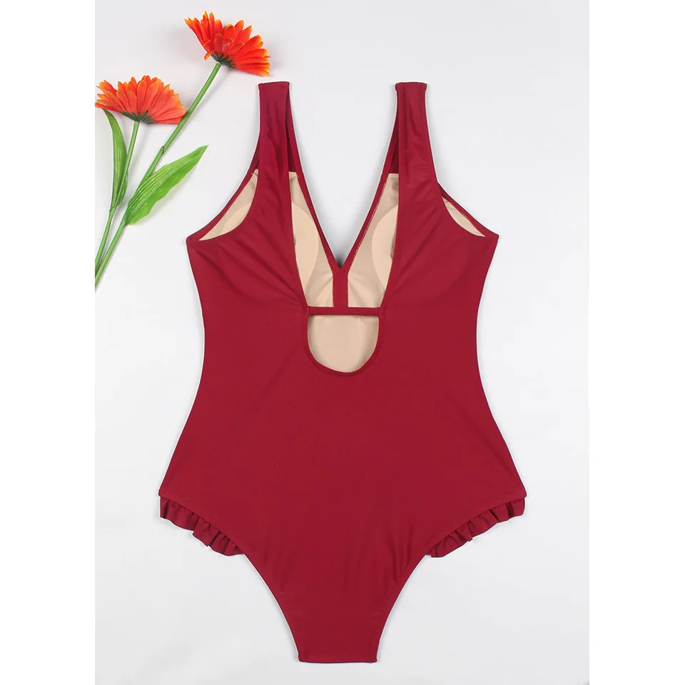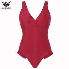 NAKIAEOI 2018 New Sexy One Piece Swimsuit May Women Fused Swimwear Female Bather Solid Red Thong Backless Monokini Beach Wear
