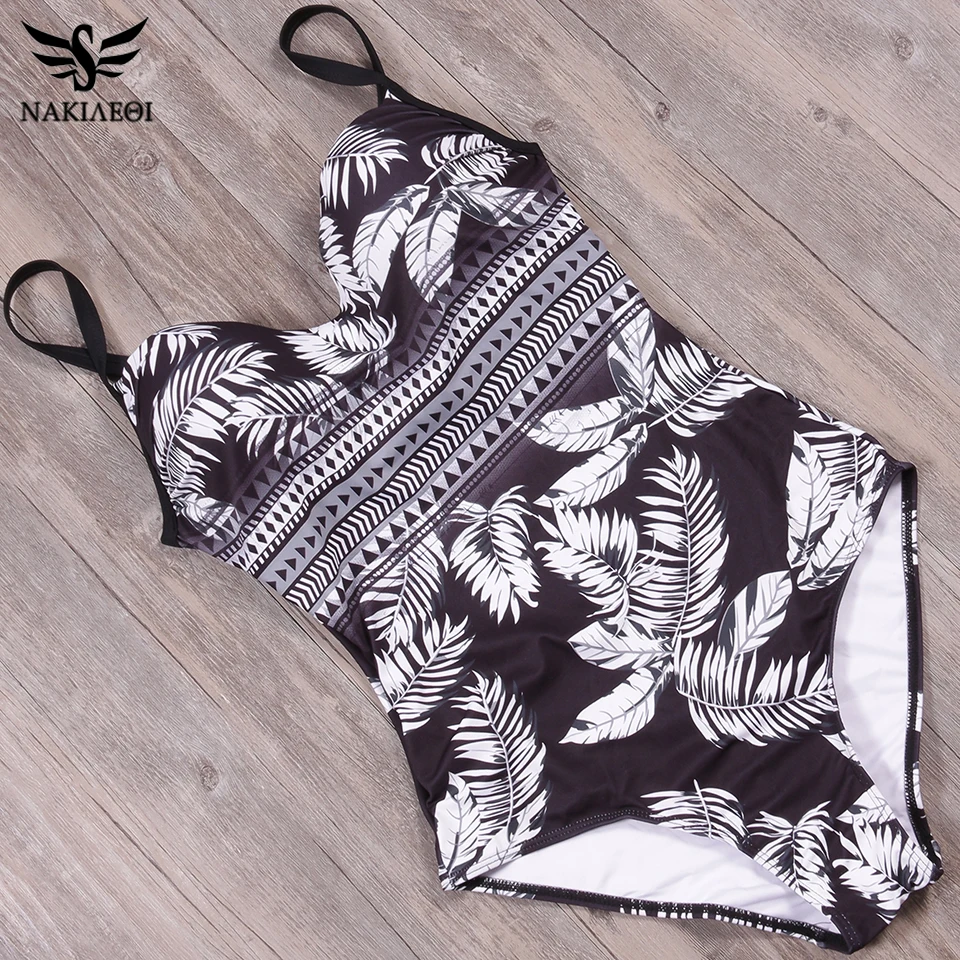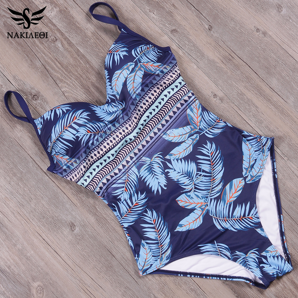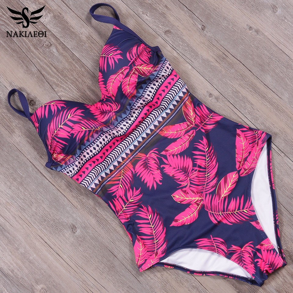 NAKIAEOI 2018 New Sexy One Piece Swimsuit Plus Size Print Floral Swimwear Women Bathing Suits Swimwear Monokini Swimsuit L~4XL