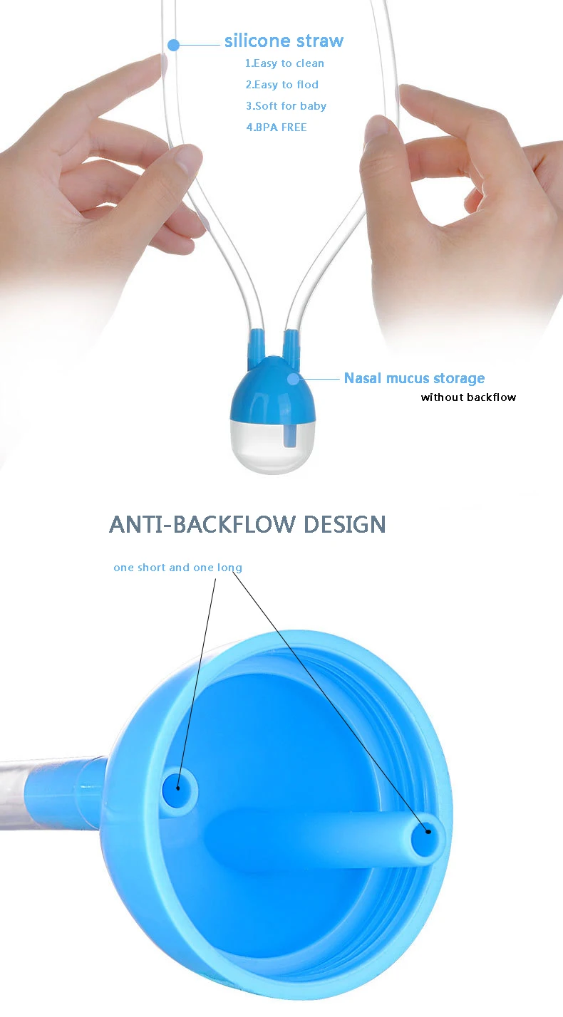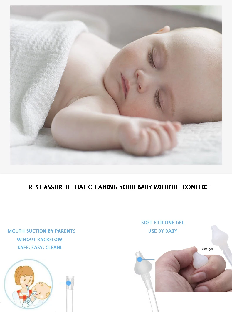 Put the side of nose cleaner gently placed into the baby nose, the other end into mouth to suck out the dirt, repeated several times until the clean up.