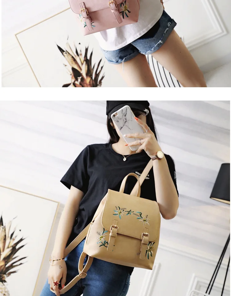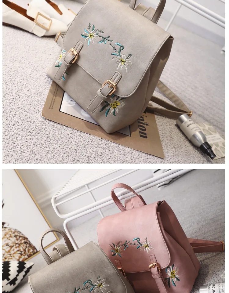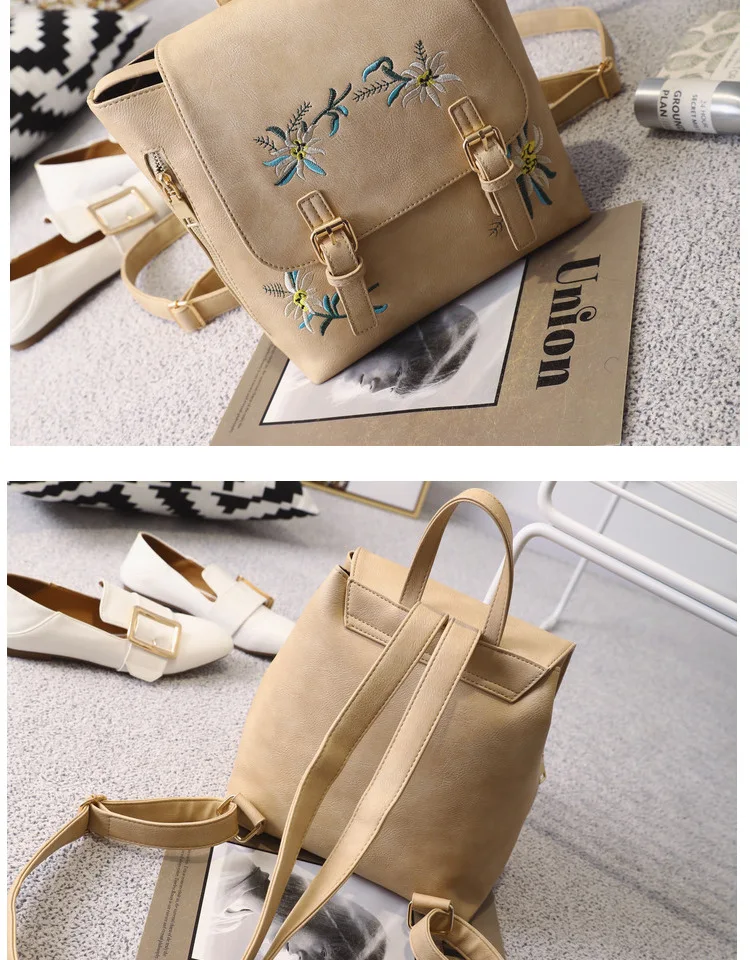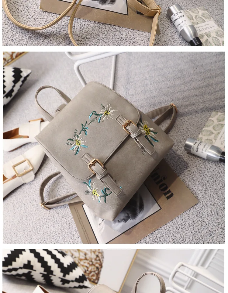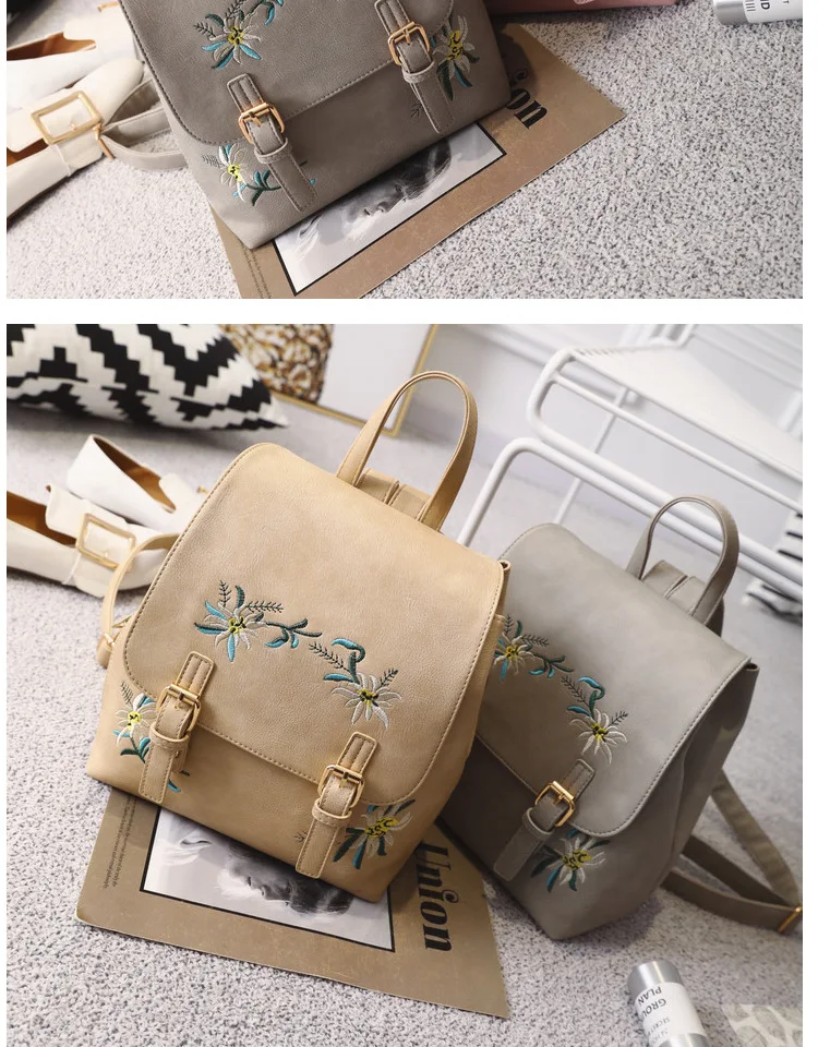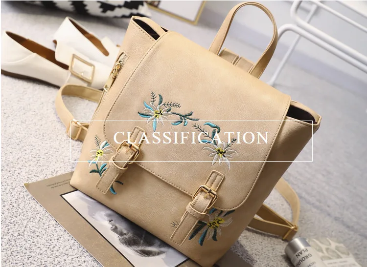 National Fashion Embroidery Flower Women Backpack 2018 Soft PU Leather Bagpack Girls Christmas Gift Anti theft Small Backpack