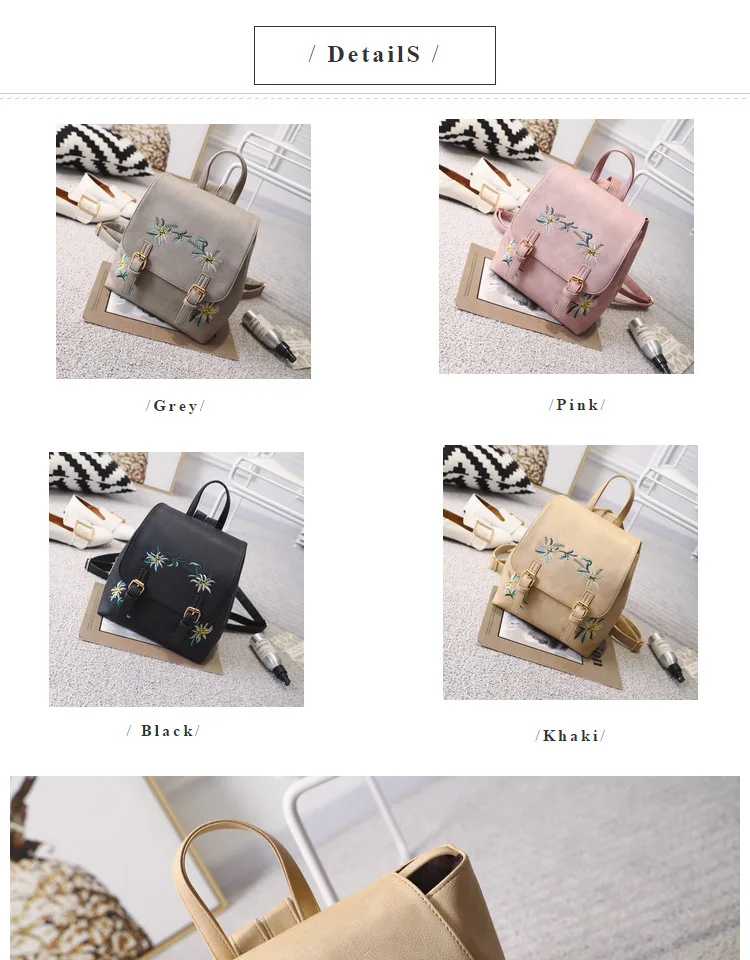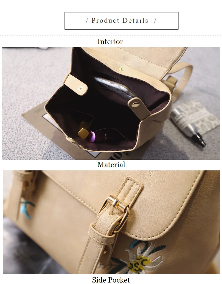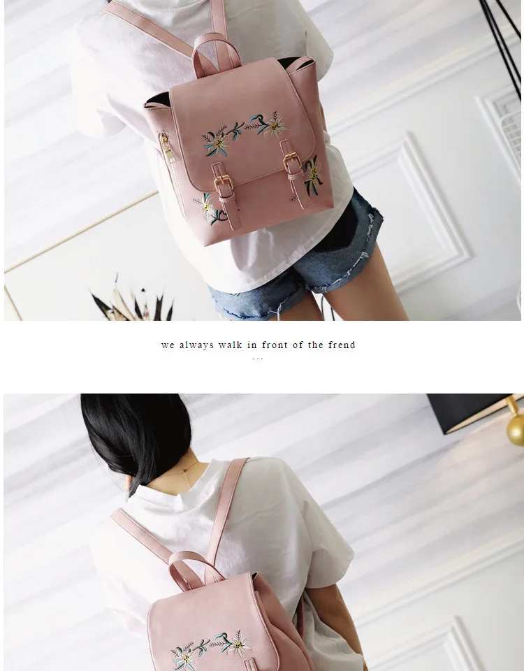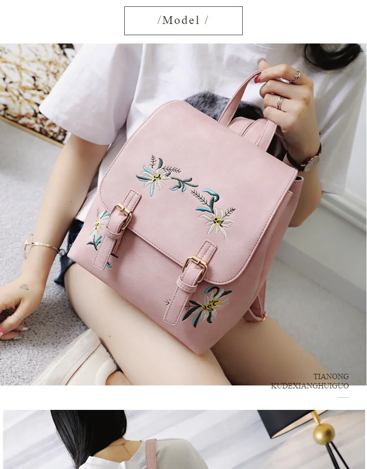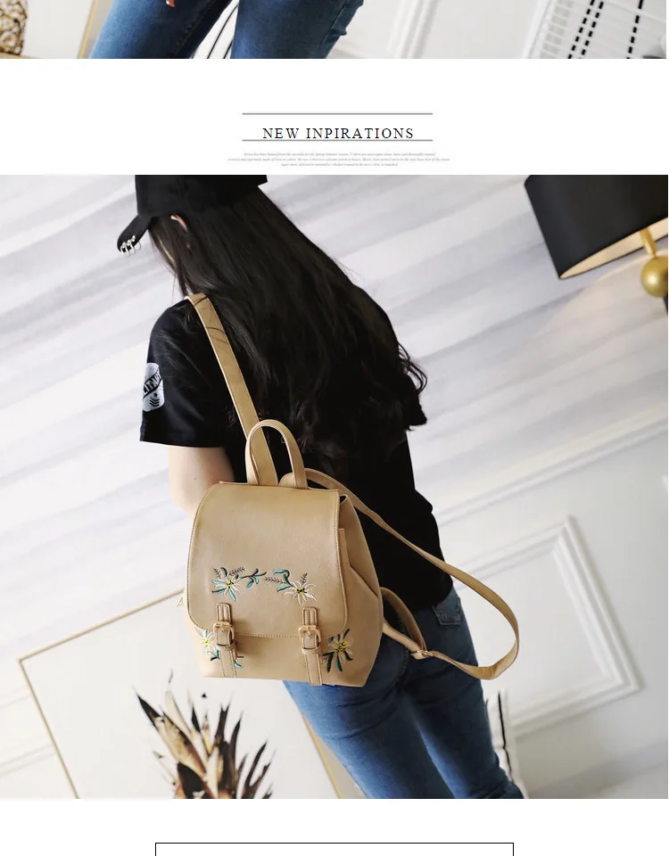 National Fashion Embroidery Flower Women Backpack 2018 Soft PU Leather Bagpack Girls Christmas Gift Anti theft Small Backpack