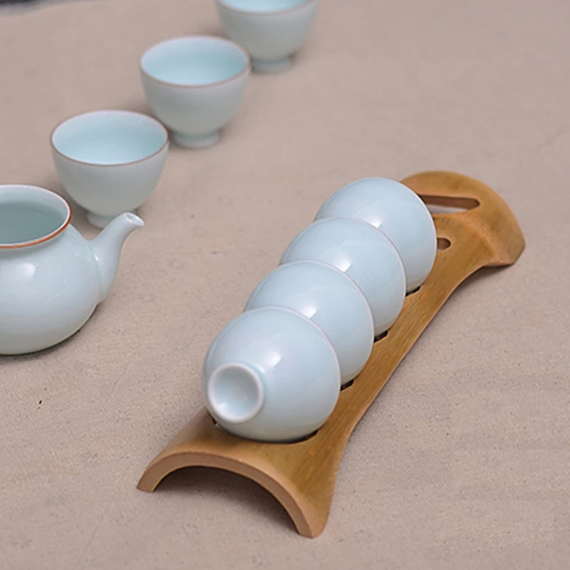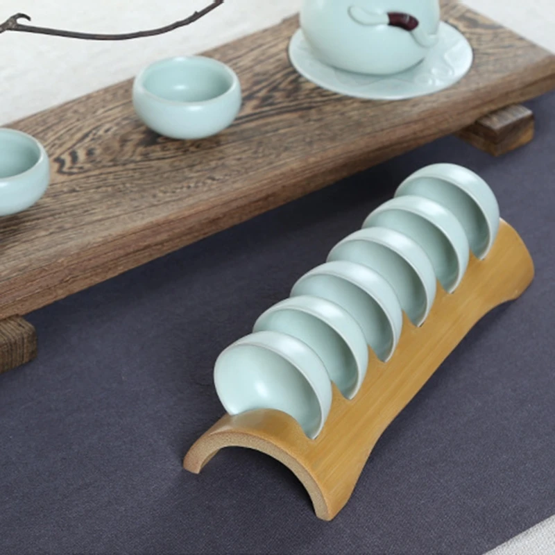 Natural Bamboo Hollow KungFu Tea Cup Holder Handmade Organizer Shelves Rack Tool