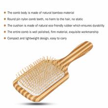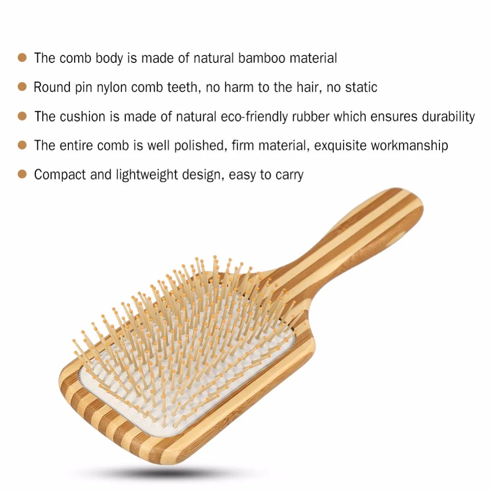 Manufactured by natural bamboo material. High quality round pin nylon comb teeth is firm enough that it’s not easy to break, no harm to the hair, no static. The rubber cushion has strong flexibility, it’s eco-friendly and odorless. The entire comb is well polished, firm material and exquisite workmanship contribute to its superior quality. Compact and lightweight design makes it easy to carry.
