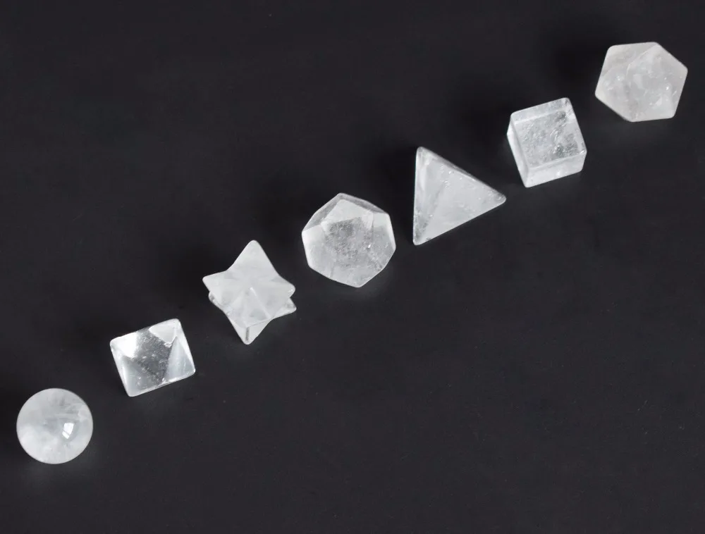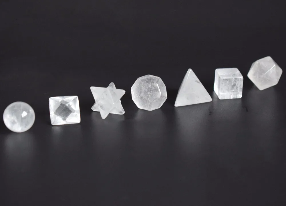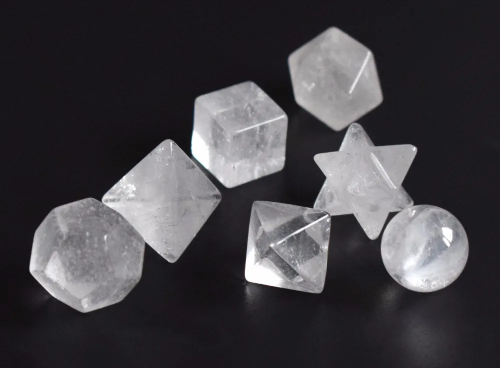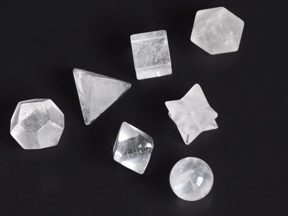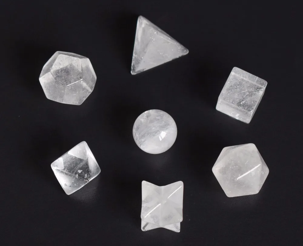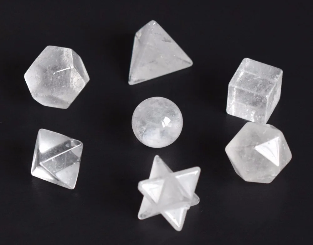 Natural Chakra Clear Quartz Carved Crystal Healing Platonic Solids Sacred Geometry Symbols with Merkaba Star
