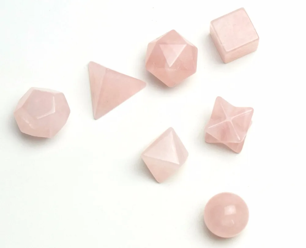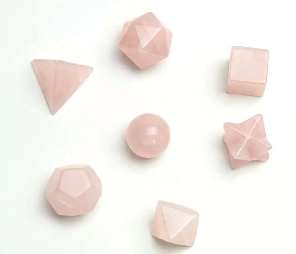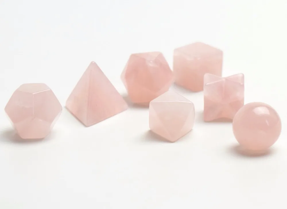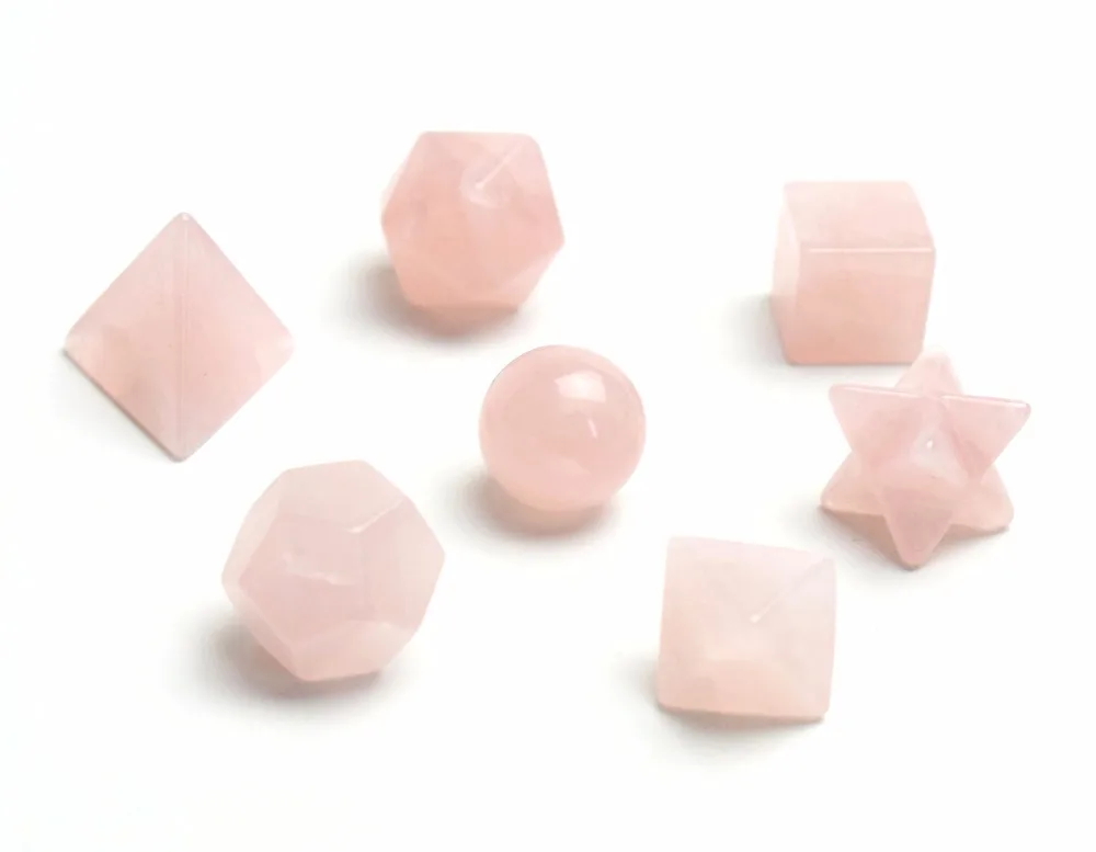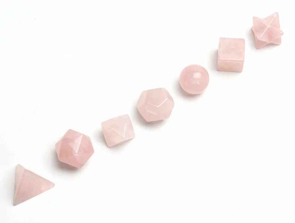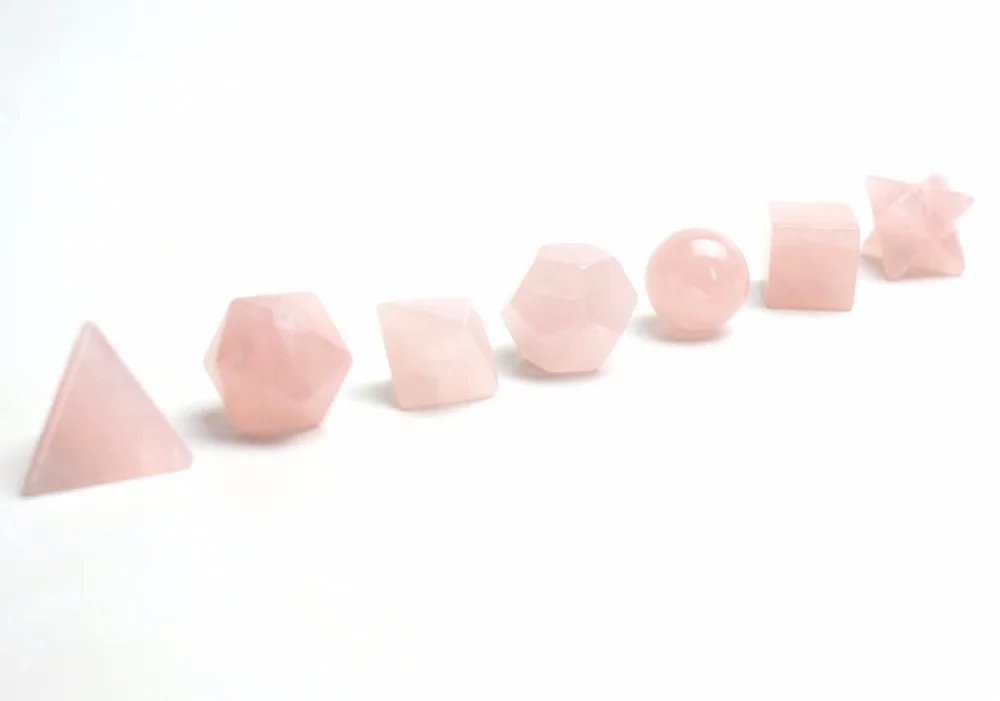 This set includes 7 Crystals faceted into the Sacred Geometric shapes known as the “Platonic Solids”. The platonic solids are the repeating geometric patterns that are the basic building blocks of life. As we know life is composed of these geometric structures: Our physical bodies, cells, DNA, plants, animals, minerals, planets, galaxies and universes are endlessly repeating these archetypal patterns. These special crystals make an excellent personal energetic enhanced kit and can be used for Chakra Clearing & Balancing, Meditation, Dream work, Ceremony, Energy Grid, Activations, Environmental Space Clearing, and Feng Shui.