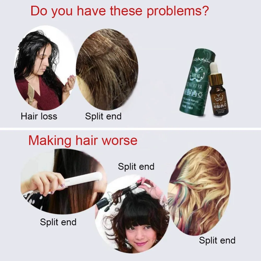 Do you have these problems like hair loss and split ends? This Natural Hair Growth Essence Oil has anti-aging ingredients, preventing hair loss and scalp aging. Nourishing your hair, making it soft and shining.
