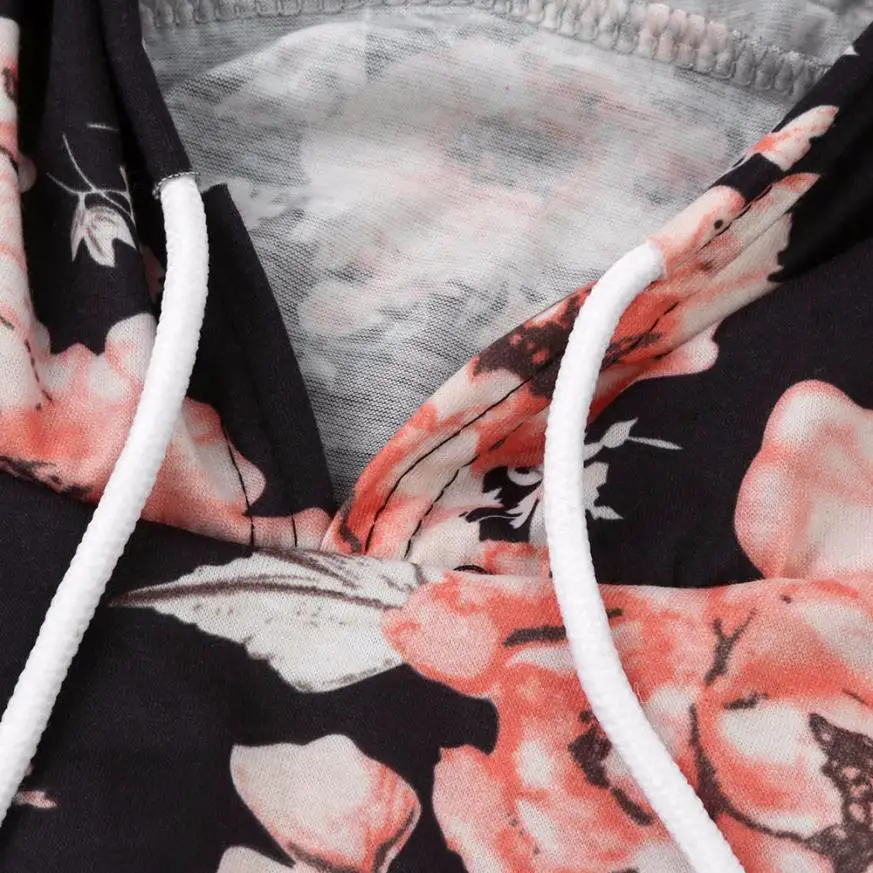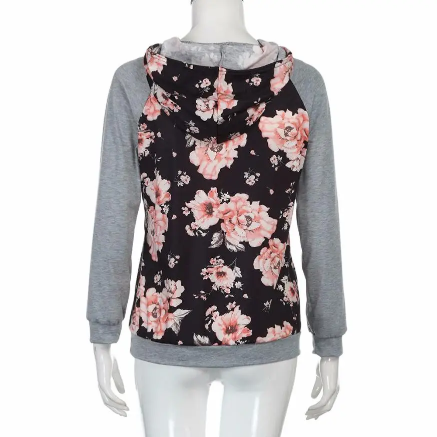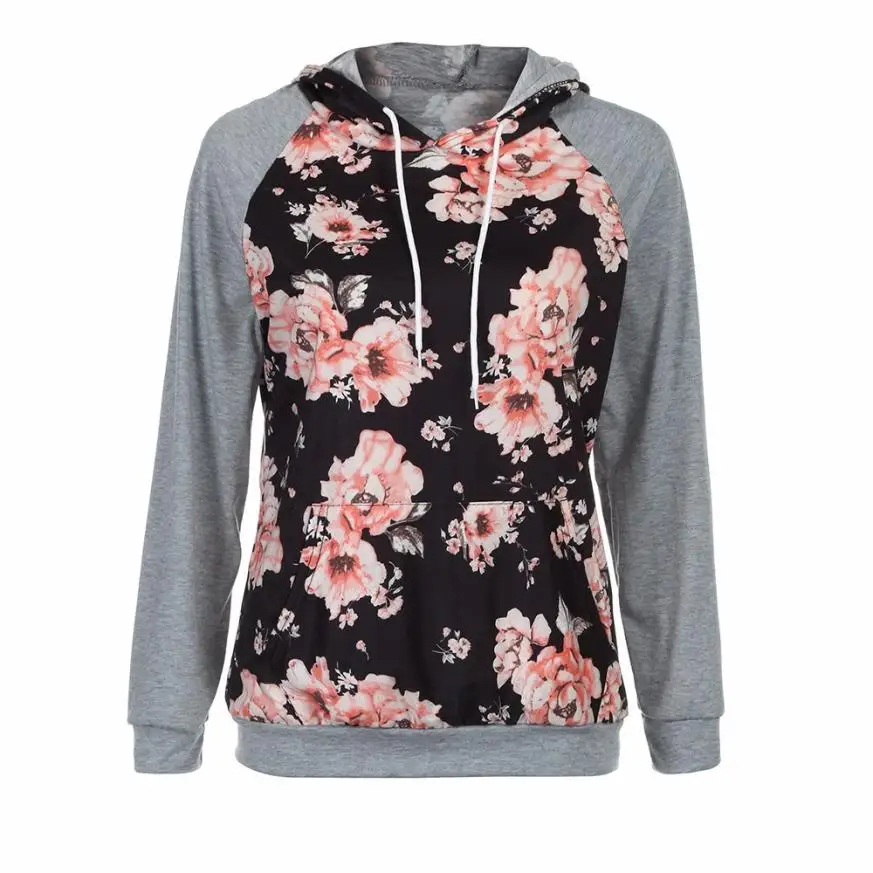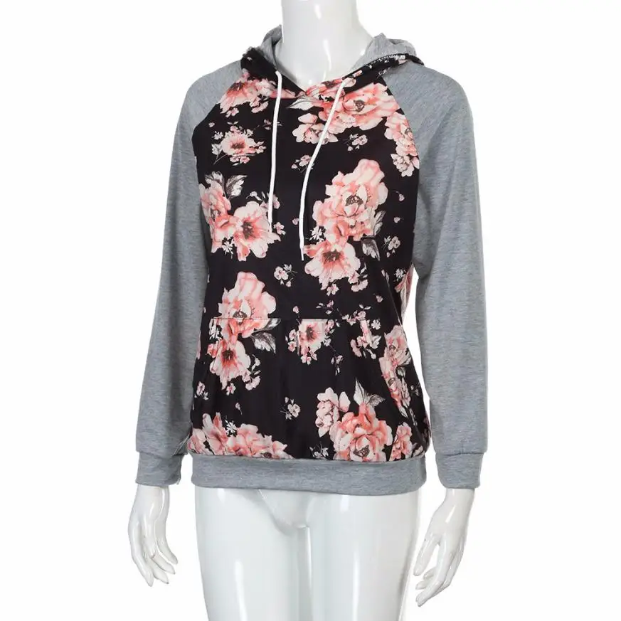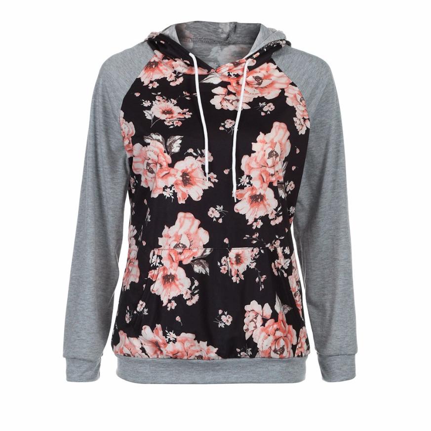 Womens Autumn Winter Floral Loose Hoodie Sweatshirt Pullover Tops Blouse