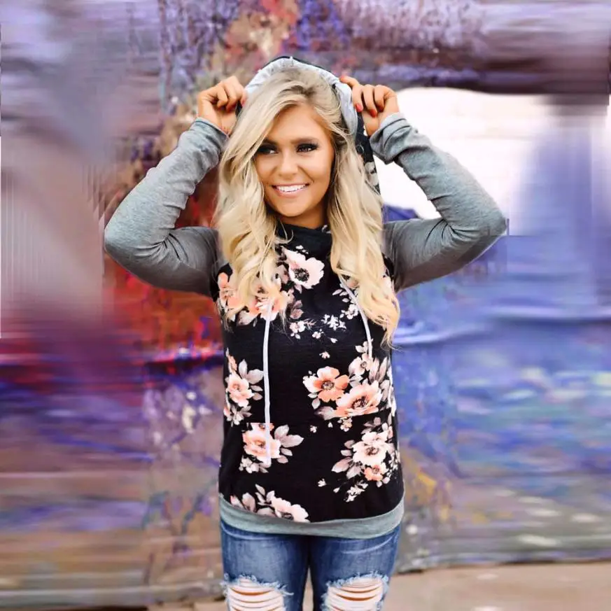 natural Waist comfortable girl hoodies Womens Autumn Winter Floral Loose Hoodie Sweatshirt Pullover Tops Blouse TW Free shipping