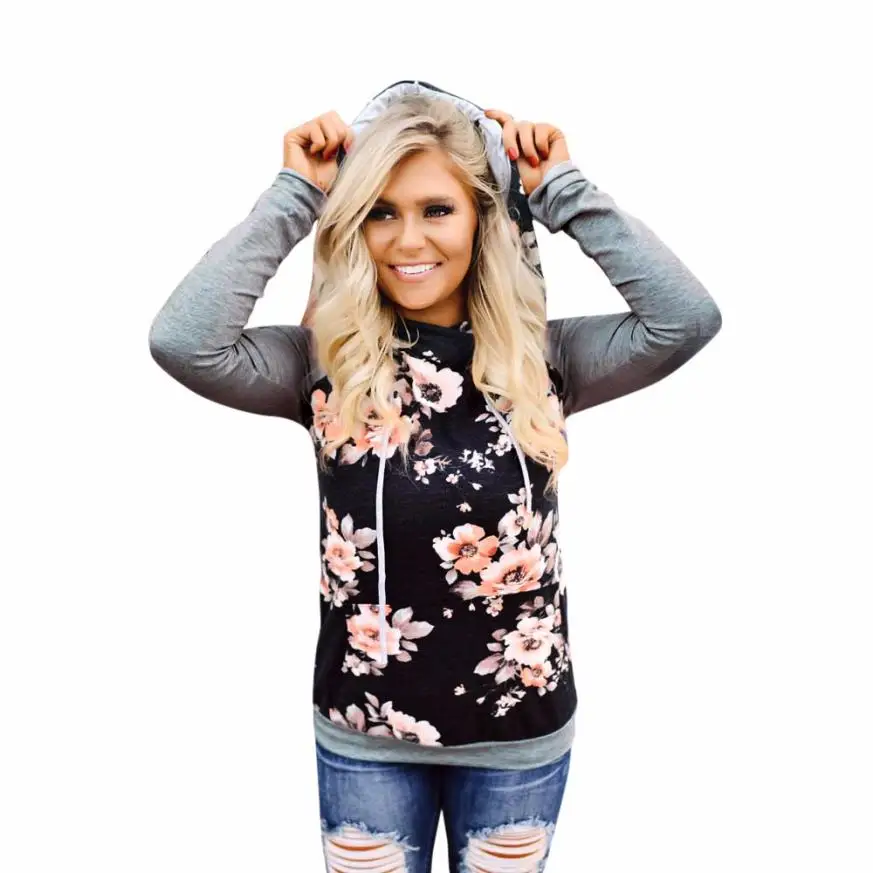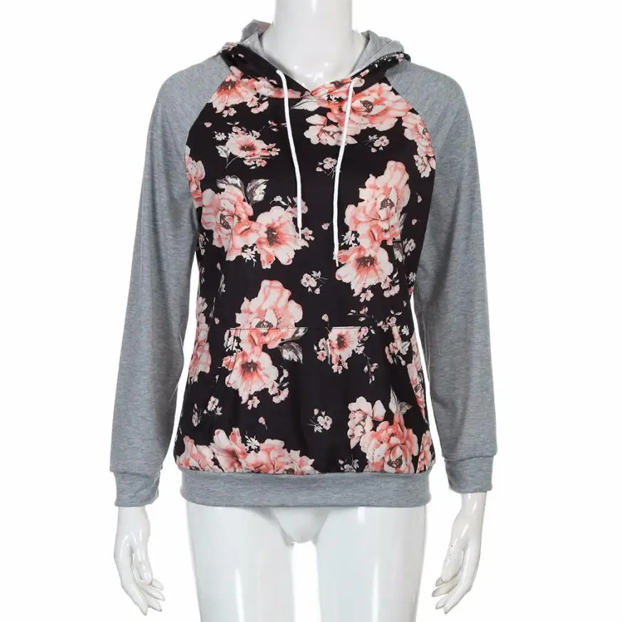 Womens Autumn Winter Floral Loose Hoodie Sweatshirt Pullover Tops Blouse