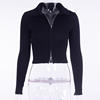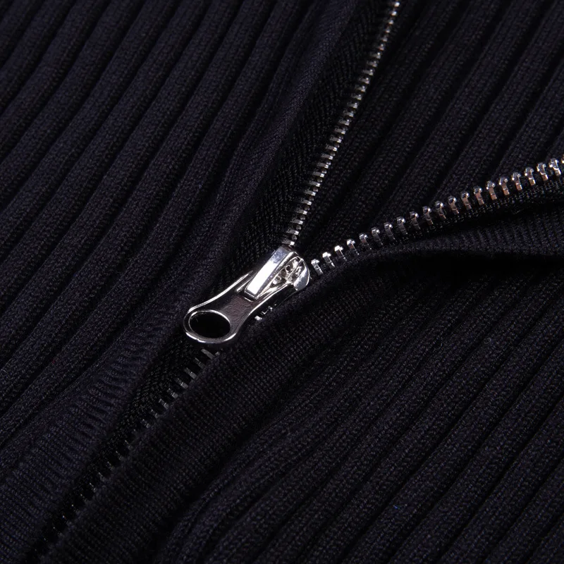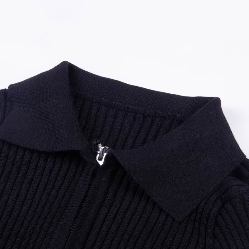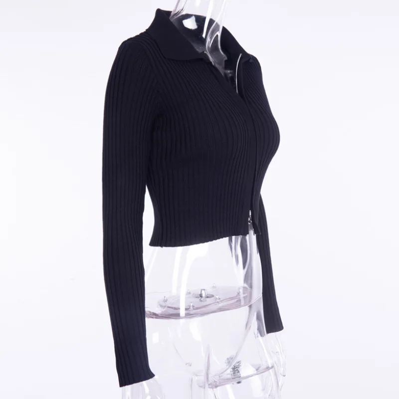 NCLAGEN 2018 New Women Autumn Ribbed Zipper Sweaters Navel Bare Crop Tops Cardigan Long Sleeve Turn Down Collar Mujer Sweater
