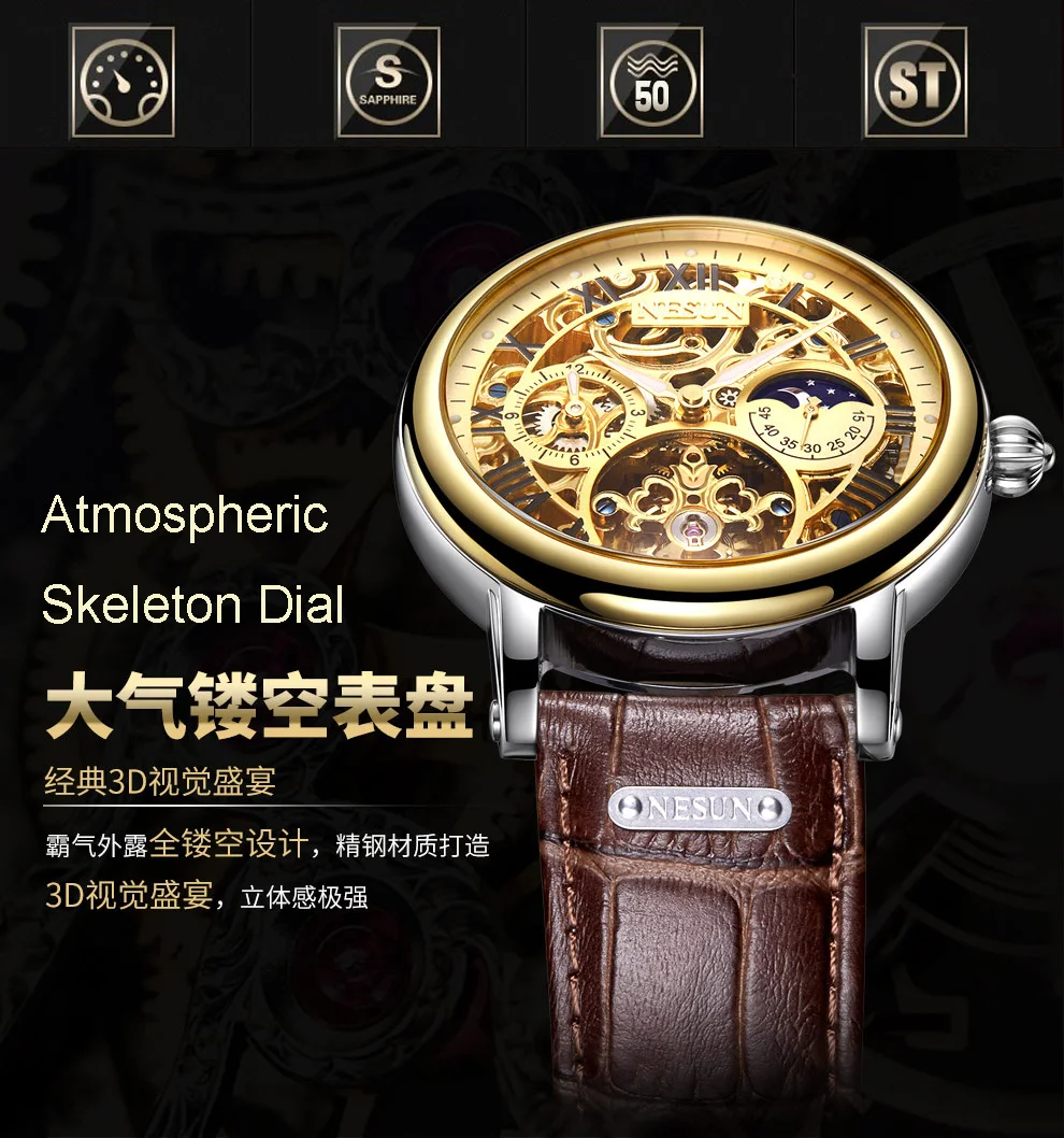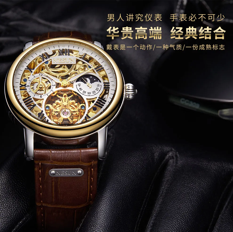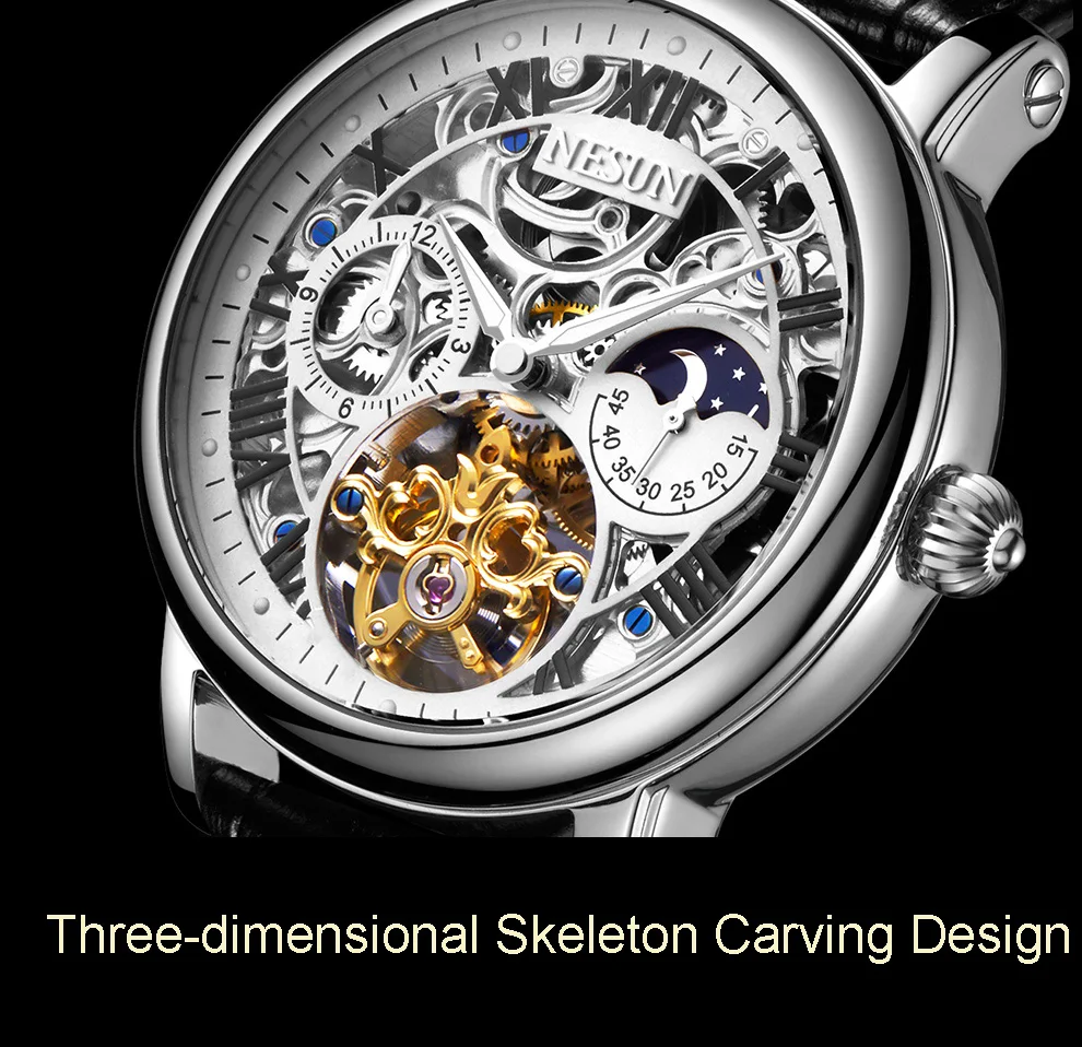 NESUN Men’s Watch Luxury Brand Automatic Mechanical Watches Men relogio masculino Multi-functional Tourbillon clock N9097-3