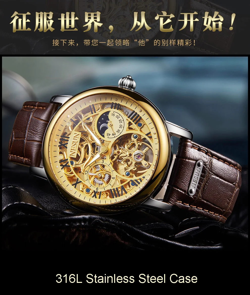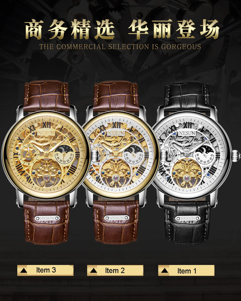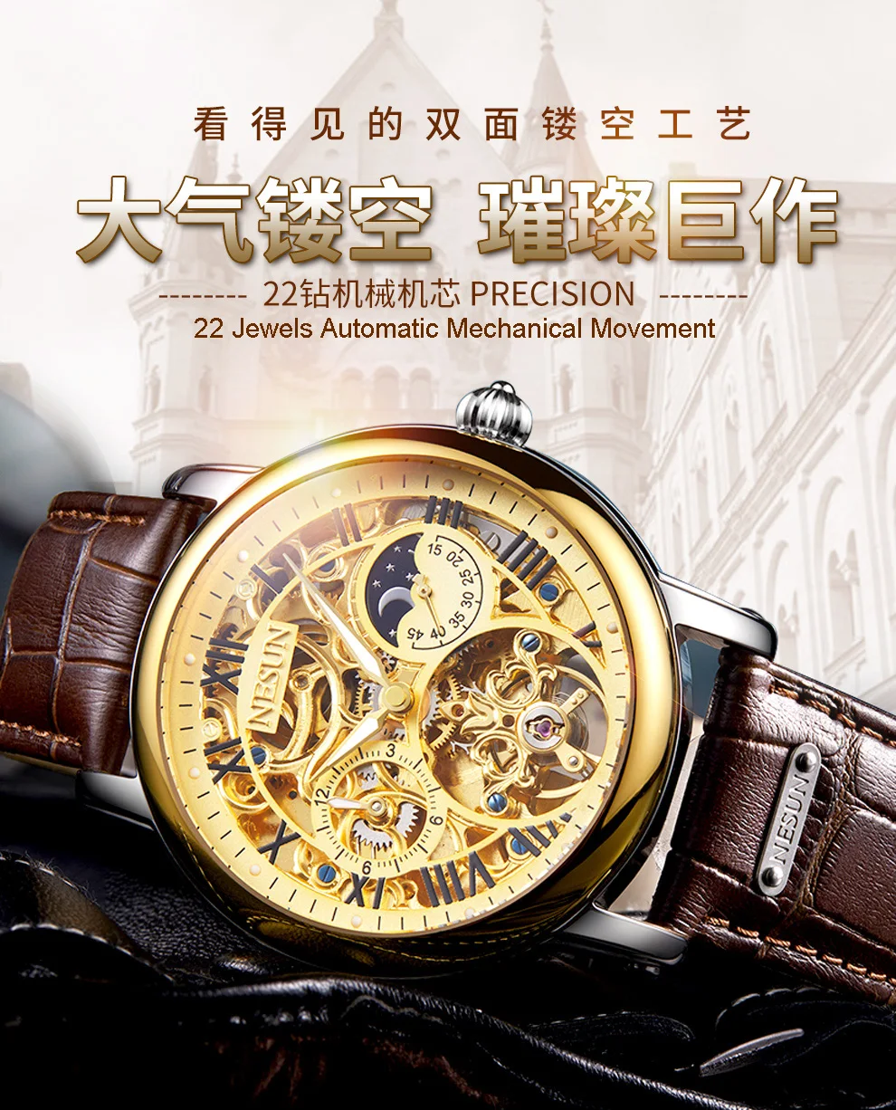 NESUN Men’s Watch Luxury Brand Automatic Mechanical Watches Men relogio masculino Multi-functional Tourbillon clock N9097-3