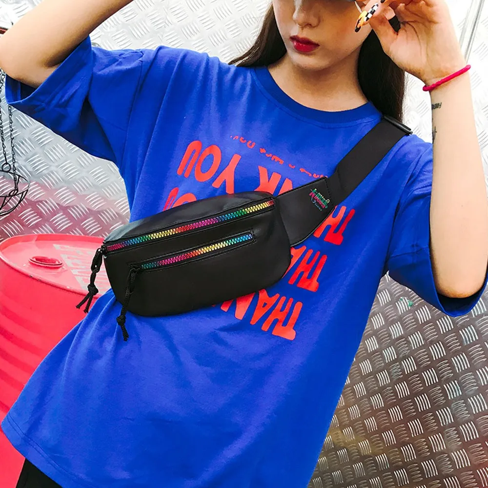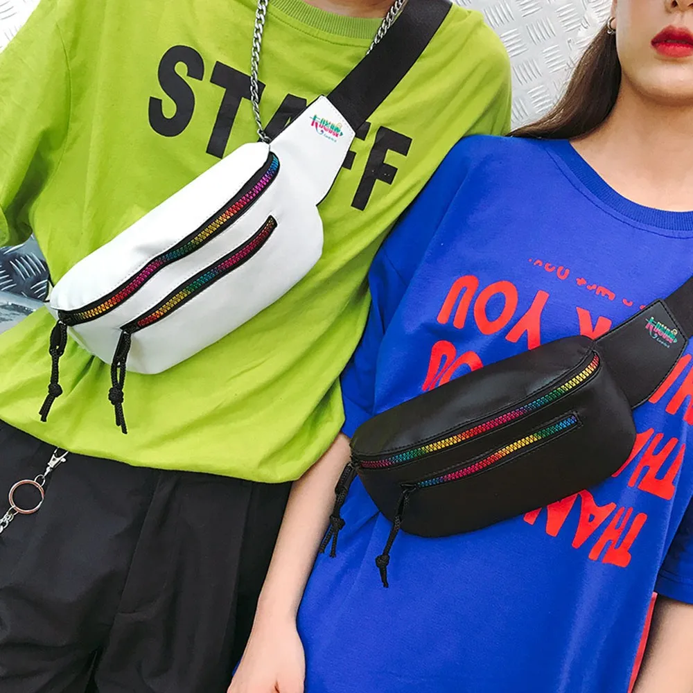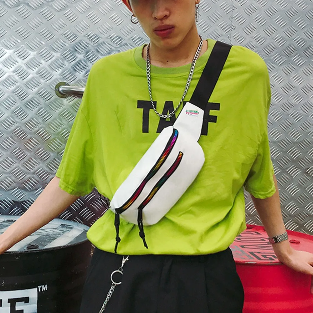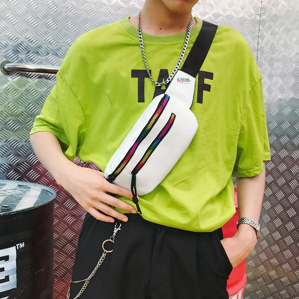 Fashion Unisex Color Zipper Bag Waist Bag Crossbody Bag Chest Bag