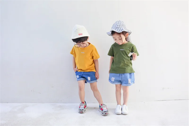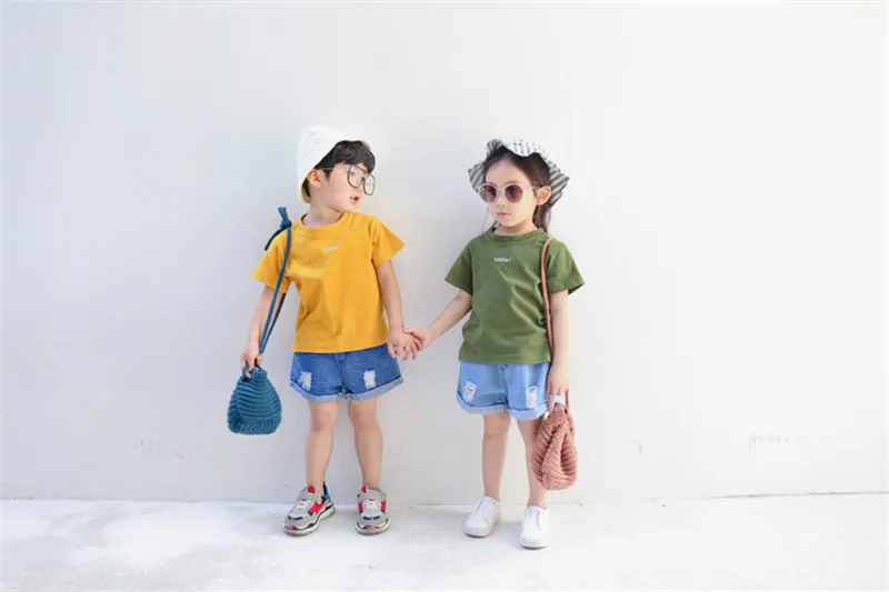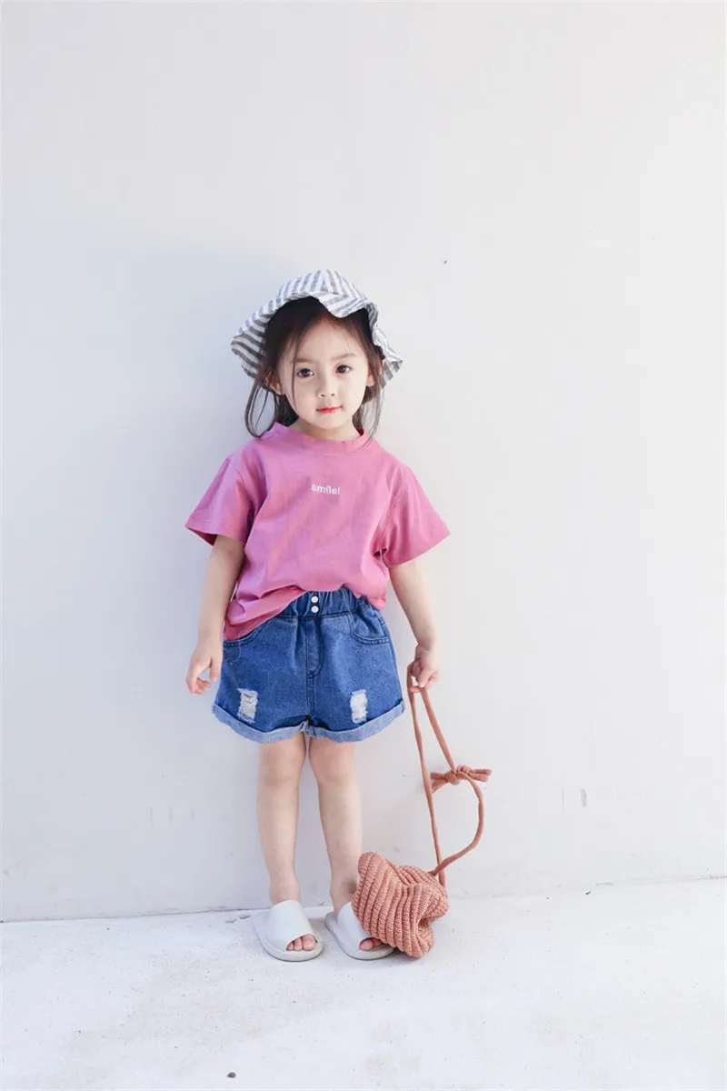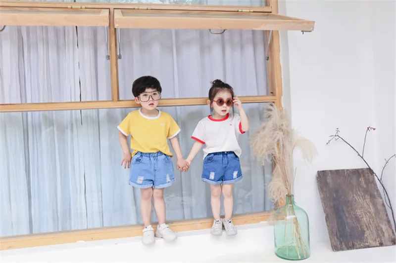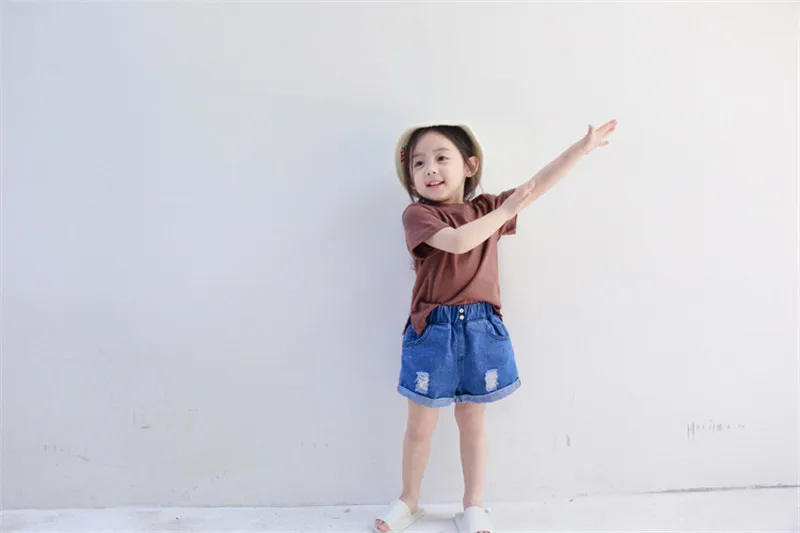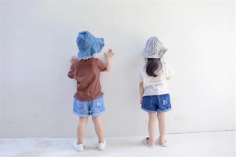 New 1-2Y Korean Baby Boys Girls Holes Jeans Shorts Kids Summer Blue Denim Shorts For Kids Elastic Waist Cotton Children Calcao