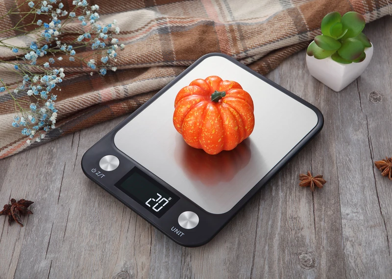 11lb/5kg Digital Kitchen Scale Electronic Stainless Steel Food Weighing Scales Large Platform With Easy To Read LCD Display