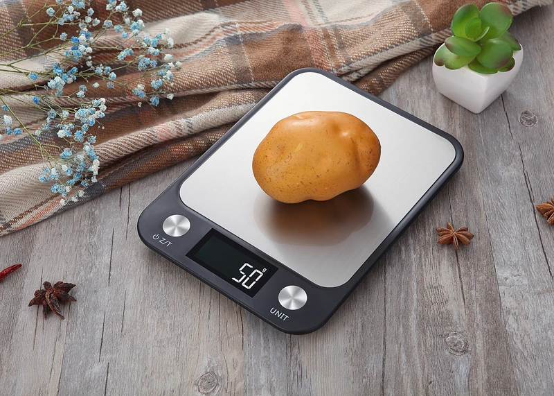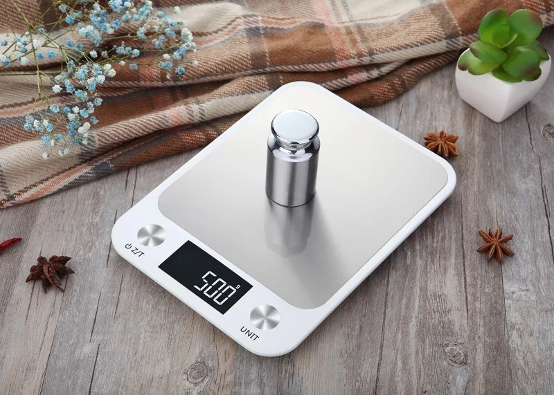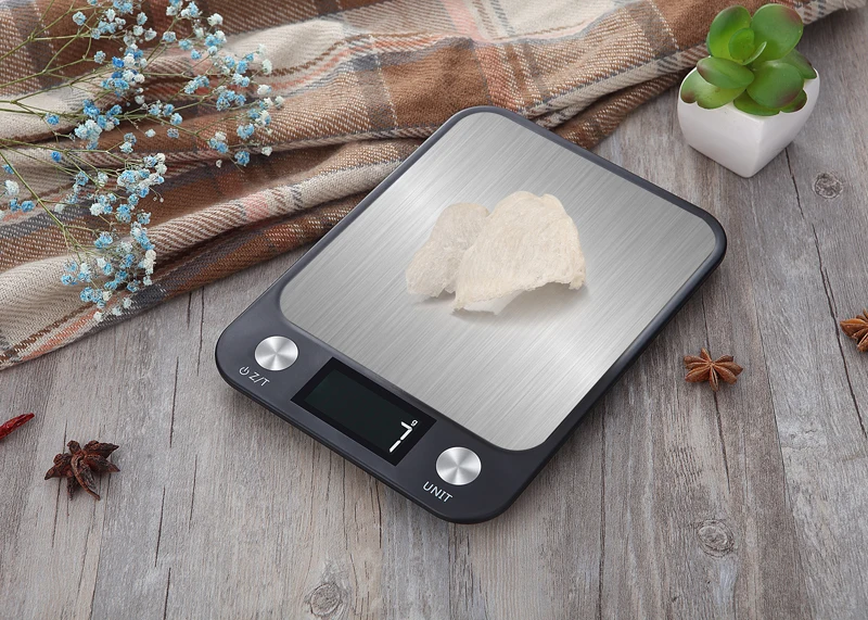 New 11lb/5kg Digital Kitchen Scale Electronic Stainless Steel Food Weighing Scales Large Platform With Easy To Read LCD Display
