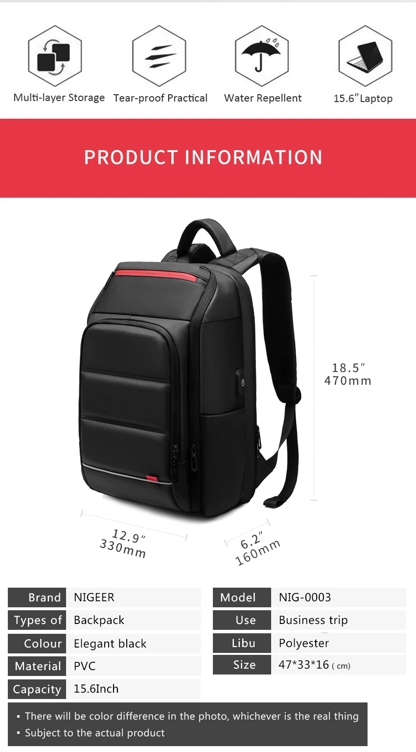 NIGEER Black Chest Pack Men Casual Shoulder Crossbody Bag USB Charging Chest Bag Water Repellent Travel Messenger Bag Male n1820USD 34.40/piece Multifunction Crossbody Bags Men USB Charging Chest Pack Short Trip Messengers Chest Bag Water Repellent Shoulder Bag Male n1825USD 28.56-28.98/piece Men Travel Backpack Large Capacity Teenager Male Mochila Back Anti-thief Bag USB Charging 17.3″ Laptop Backpack Waterproof n0007USD 38.69/piece NIGEER Male Travel Backpack Multifunction Large Capacity Bags USB Charging 15.6 inch Laptop Backpacks Water Repellent n0005USD 49.00/piece NIGEER 15.6 inch Laptop Backpack For Teenage Fashion Male Mochila Water Repellent Leisure Travel Backpacks n0004USD 50.48/piece 15.6 inch Laptop Backpack USB Charging for Male Mochila Travel Bags Water Repellent for Men Teenage Girls Backpacks School n0001USD 34.67-37.73/piece