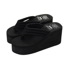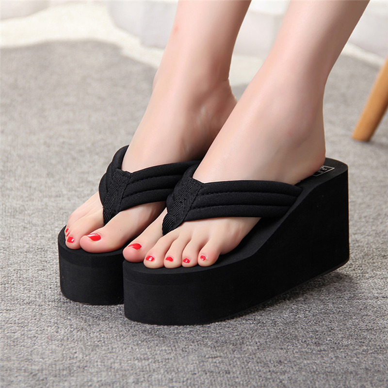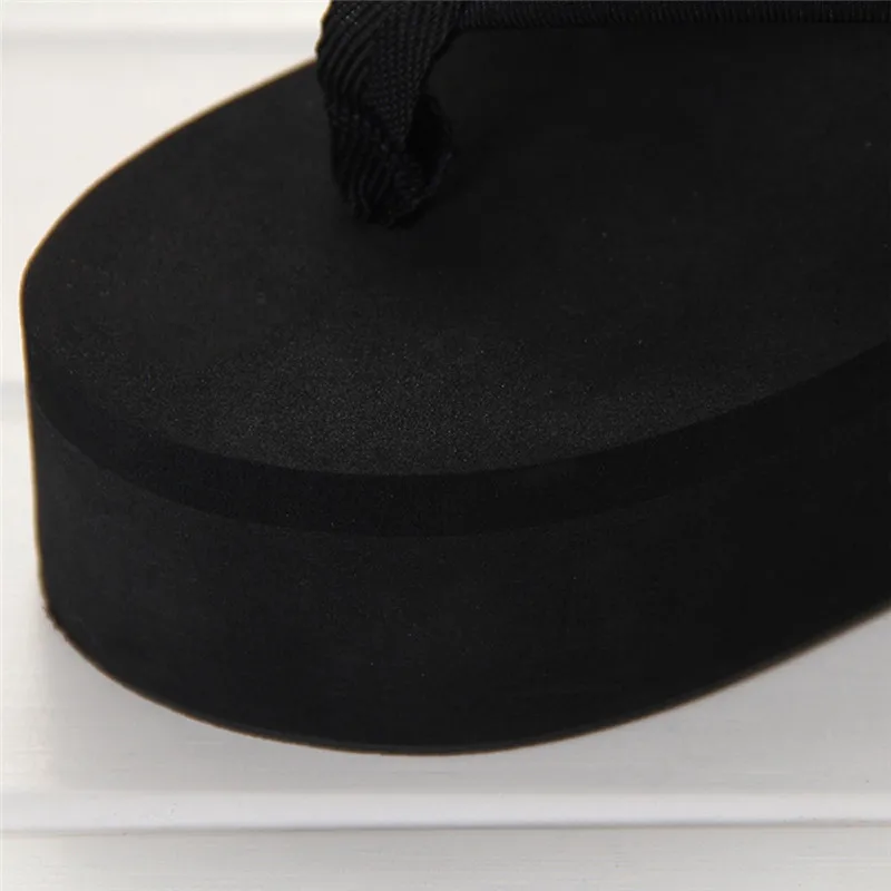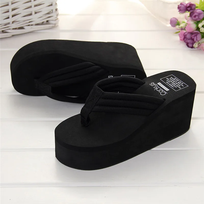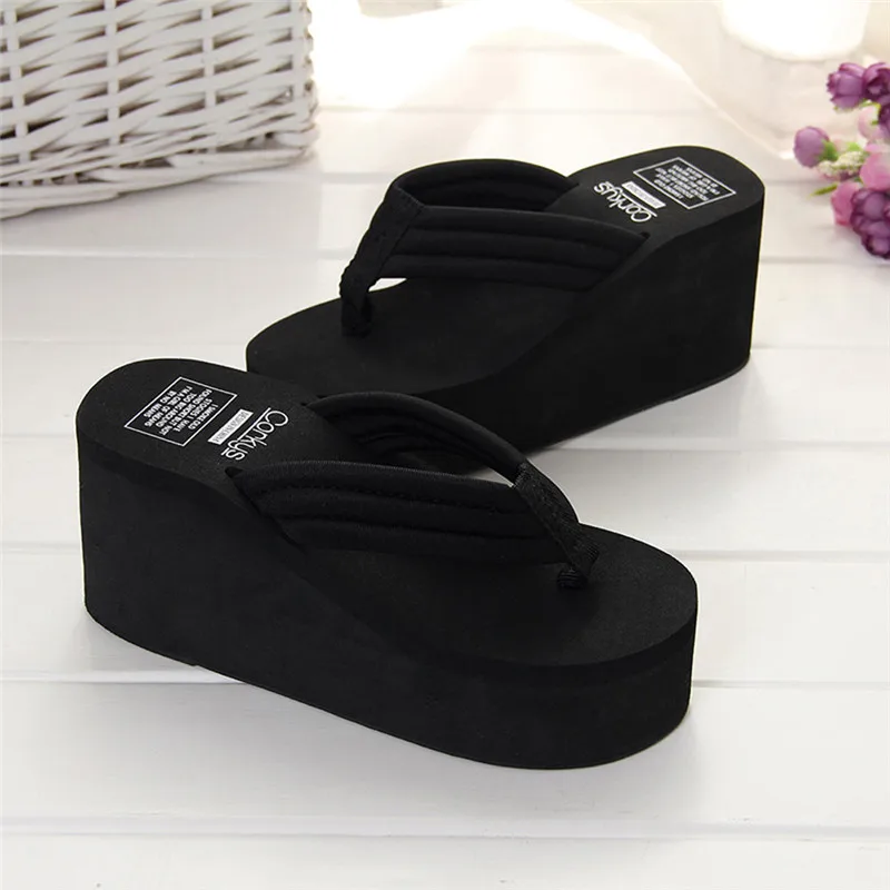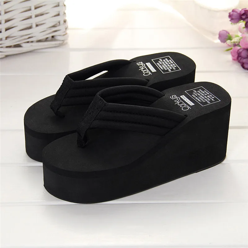 New 1Pair Comfortable Summer Soft Women Wedge Sandals Solid Color Mid Heels Platform Slippers Ladies Thick High Heels Flip Flops
