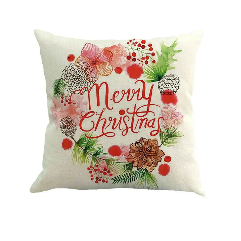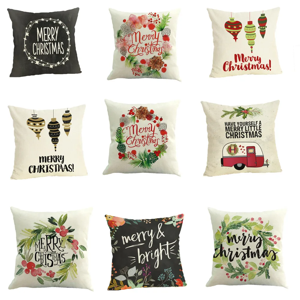New 1pc 45cmX45cm Flax Happy Christmas Pillow Cases Linen Pillow Cover Home Flax Christmas Pillow Cover Vogue