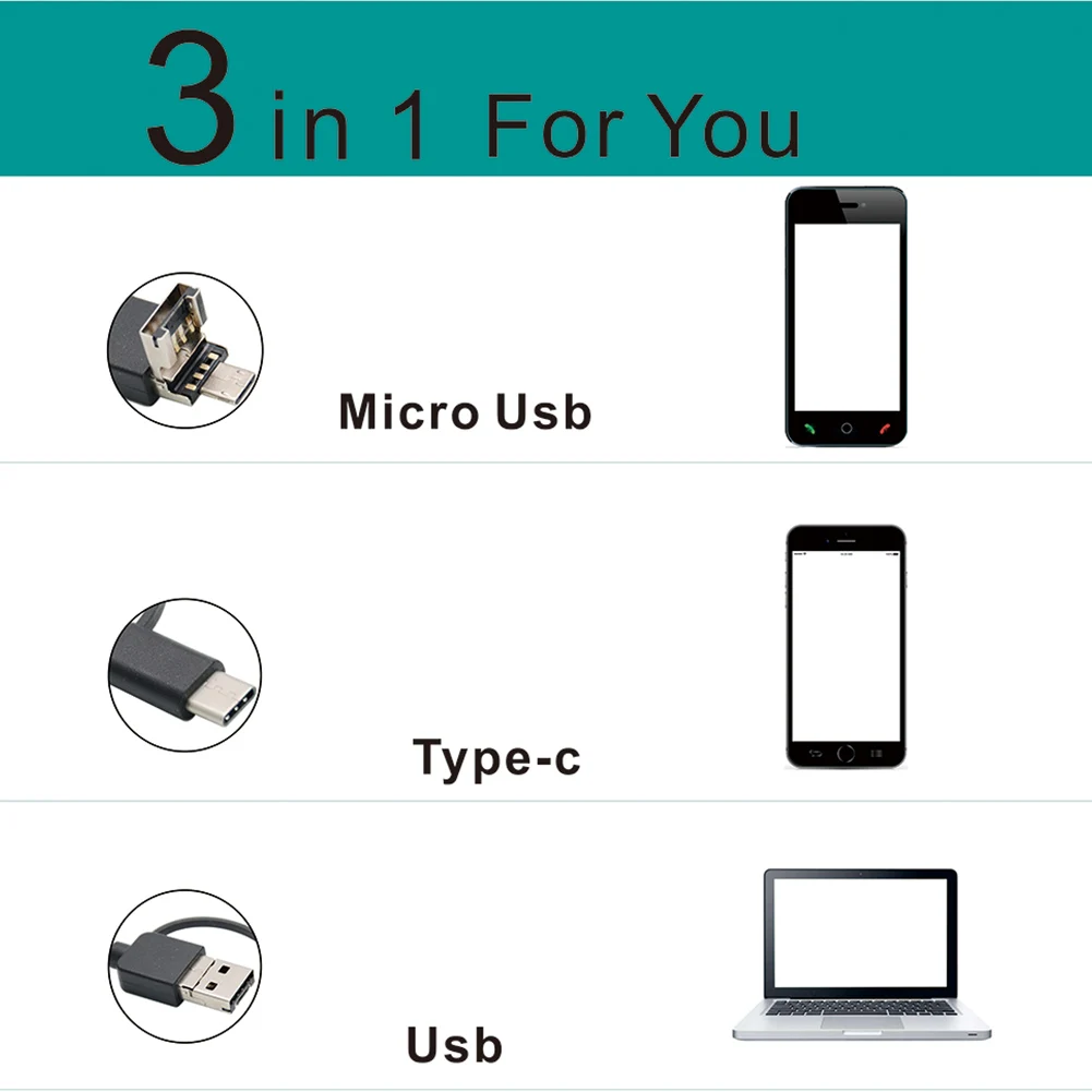 Cable length: about 2 m/ 2.19 yd,3- in-1 interface