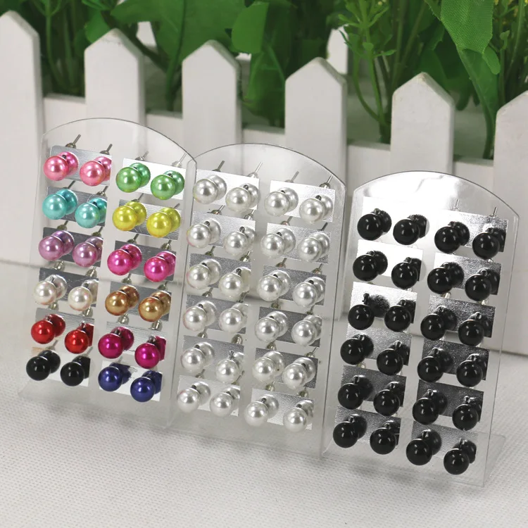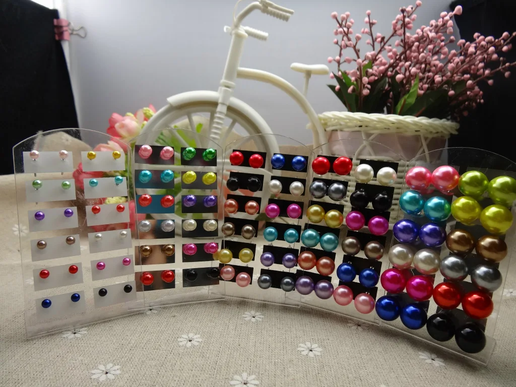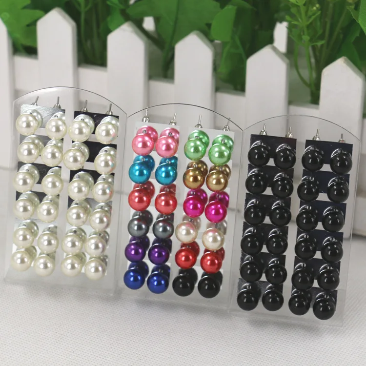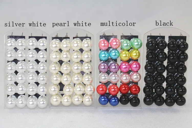 New 2016 Ball Earrings for women mix color 12 paris one pack stud earrings for ladies casual pendant earrings pearl earrings