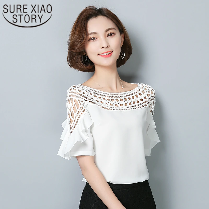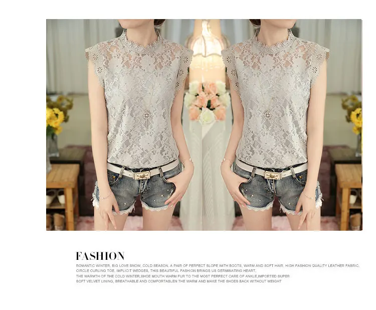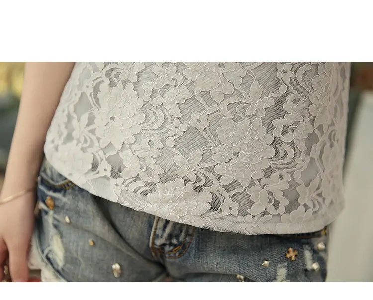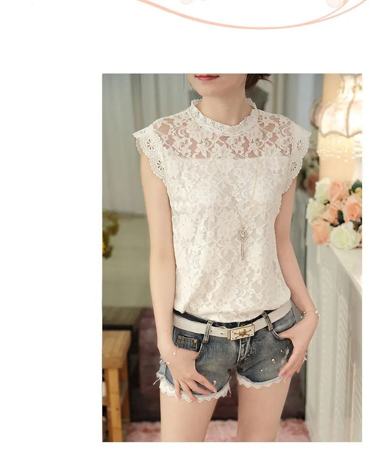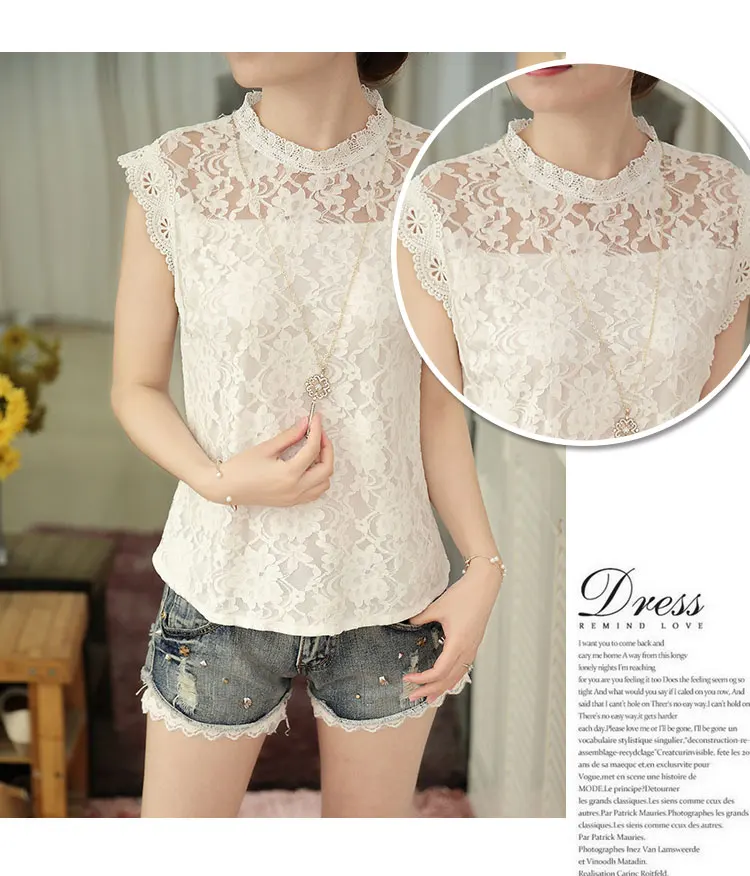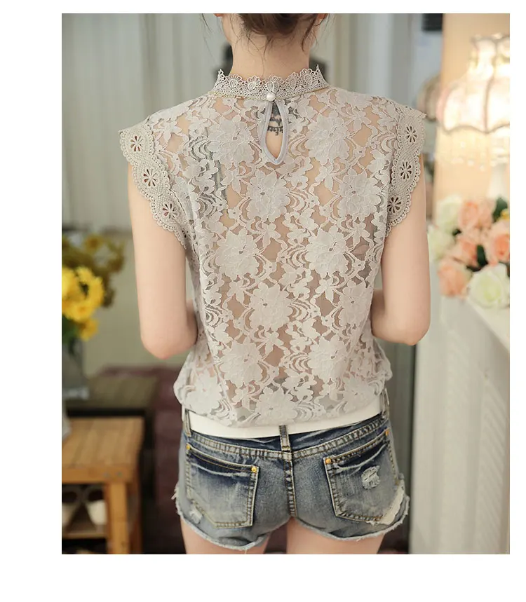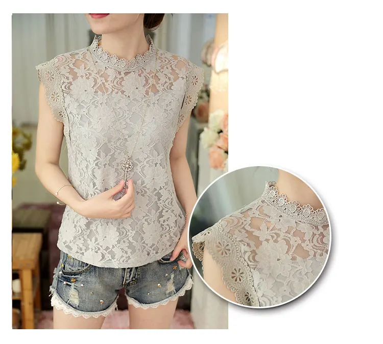 New 2017 Korean Style Fashion Summer Loose Sleeveless White Gray Female Blouse Slim Elegant Lace Women Shirt Plus Size 59G 30