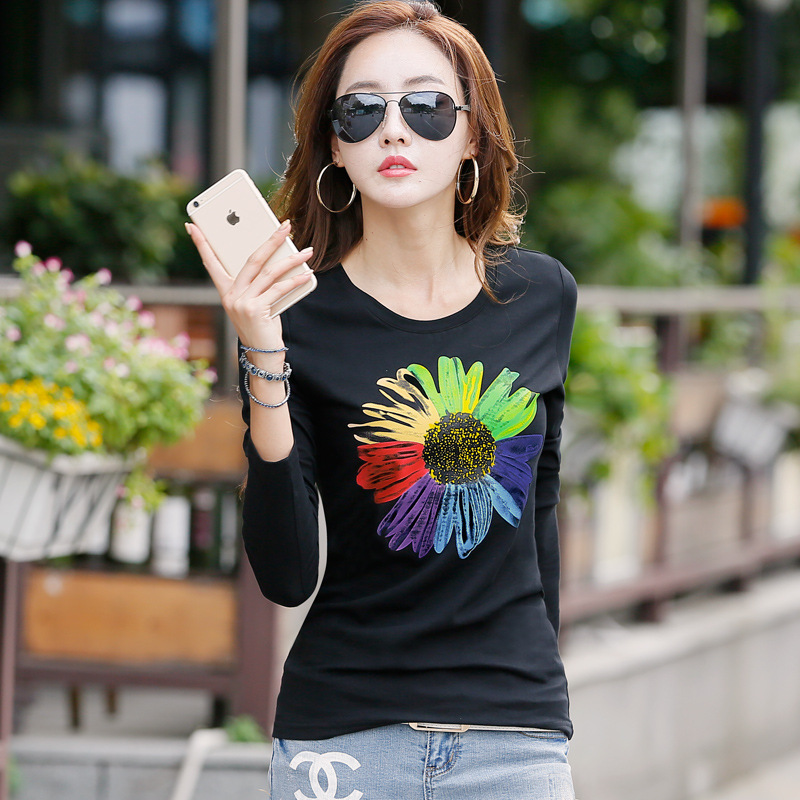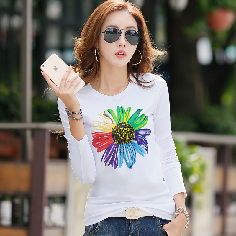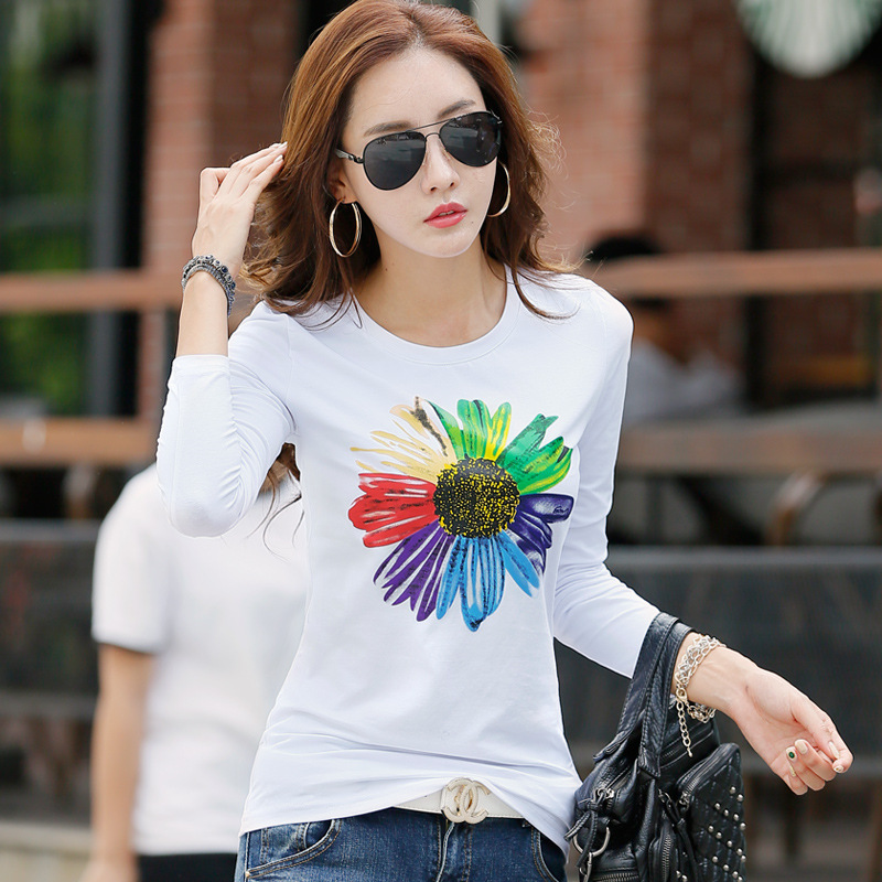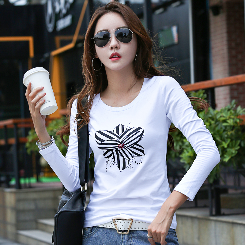 New 2017 T Shirt Women Long Sleeve Cotton T-shirts For Women Fashion Print Female T-shirt Plus Size XXL Winter Tops Tees