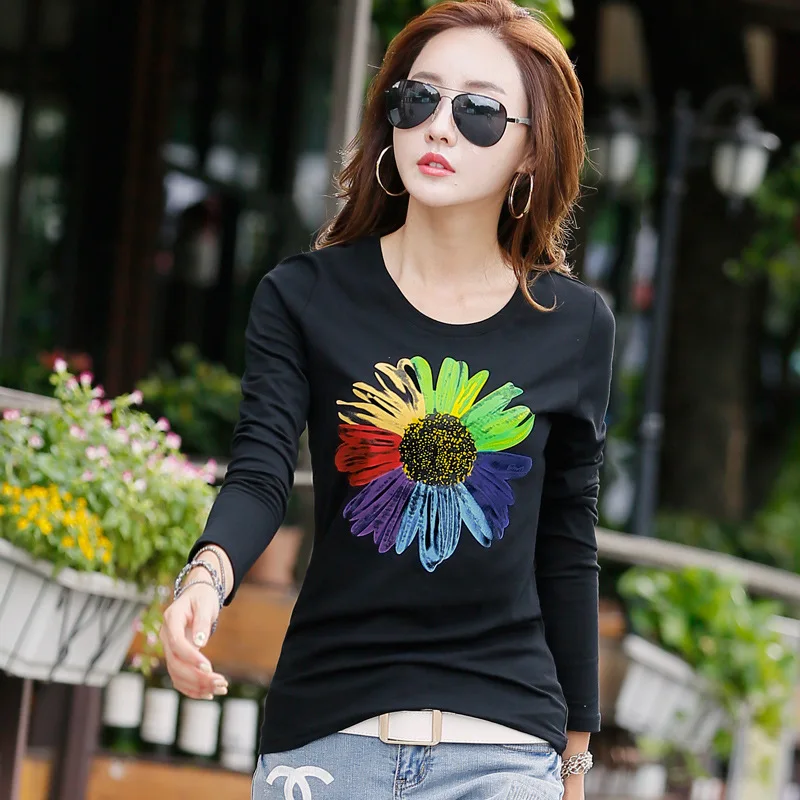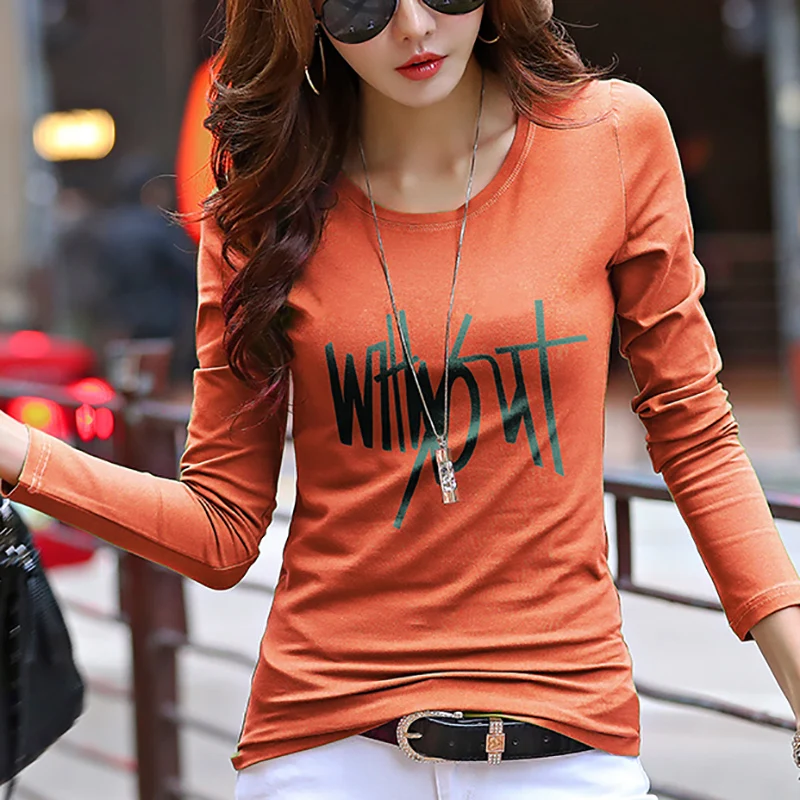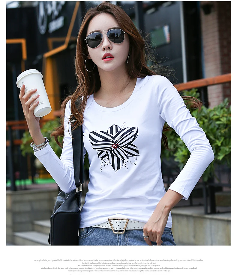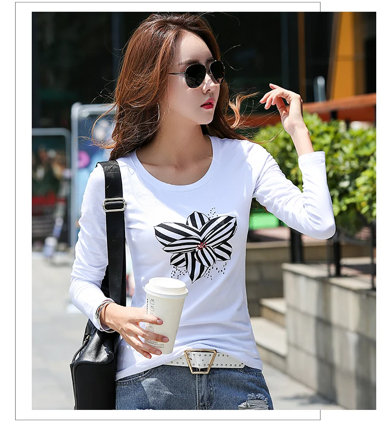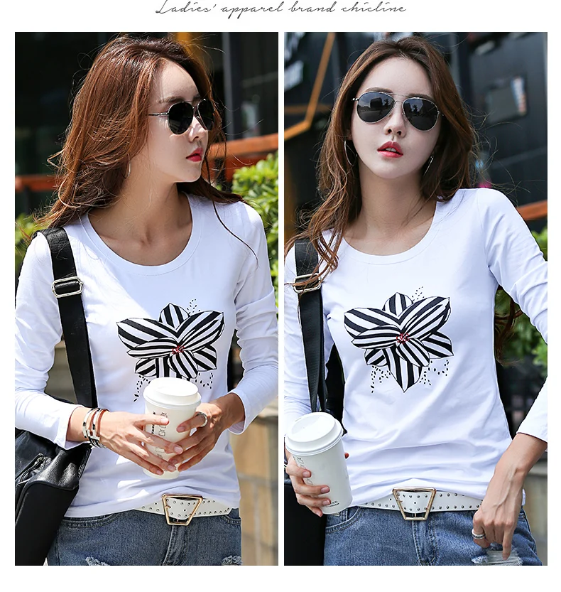 New 2017 T Shirt Women Long Sleeve Cotton T-shirts For Women Fashion Print Female T-shirt Plus Size XXL Winter Tops Tees