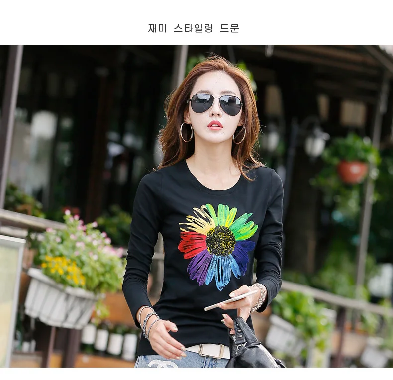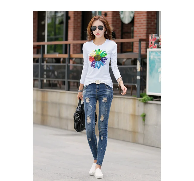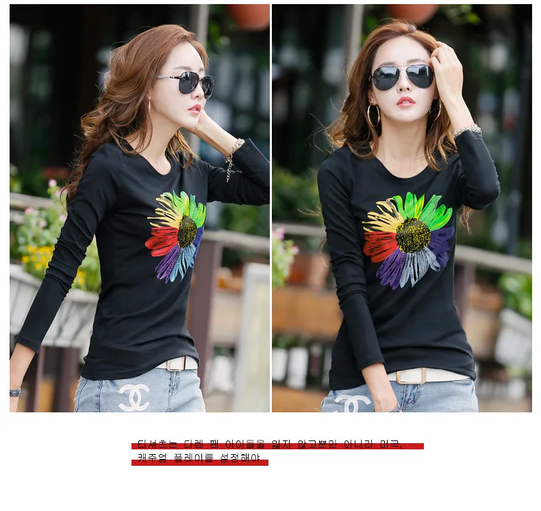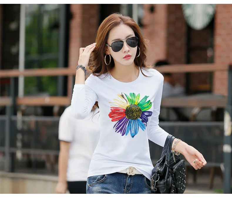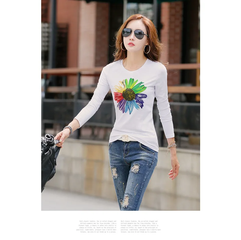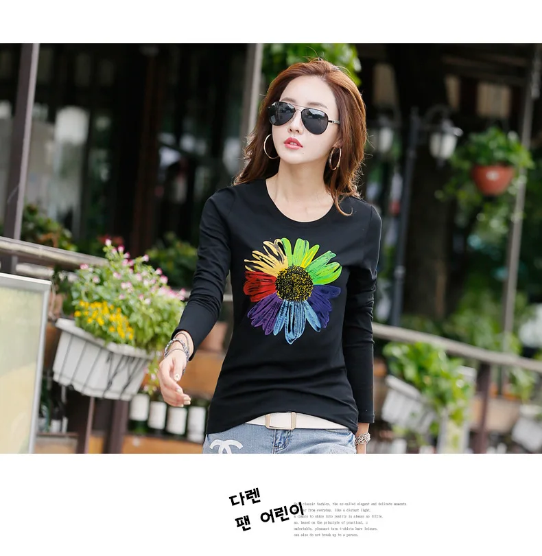 New 2017 T Shirt Women Long Sleeve Cotton T-shirts For Women Fashion Print Female T-shirt Plus Size XXL Winter Tops Tees