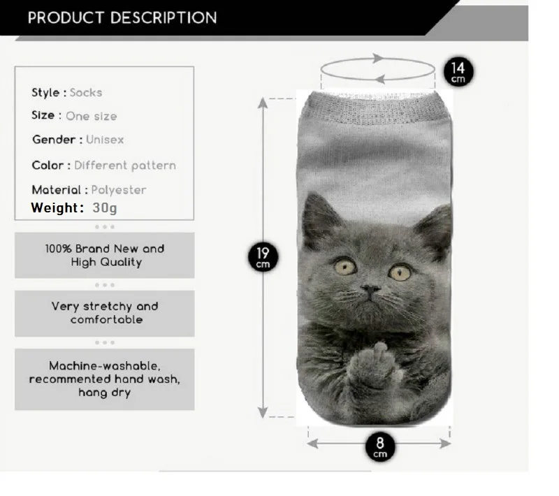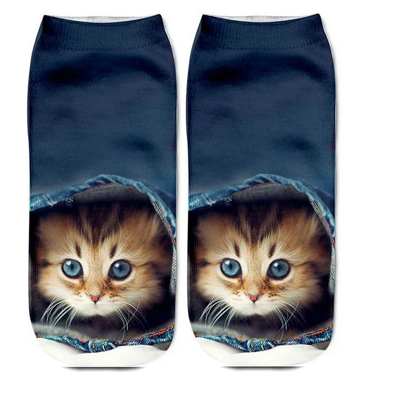 NEW 2018 1 pair 3D Cat Printing Cut Ankle Socks Multi-Types Unisex Women Men Novelty Lovely Soft Cat Casual Boat Printed Socks