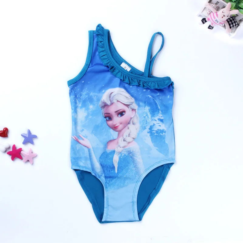 New 2018 Children Girls Cartoon Elsa One Piece Swimsuit Kids Girls Cute Blue Swimwear Summer Bathing Suits Lovely Girl G33-SW073