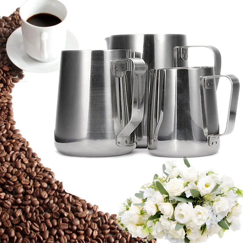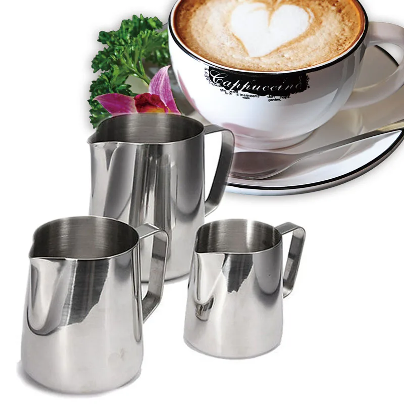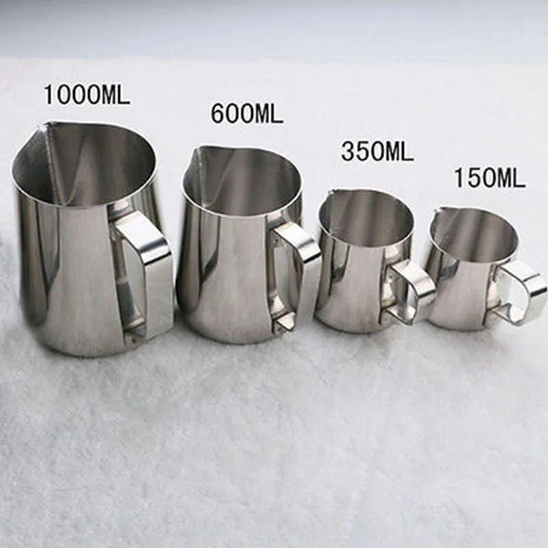 Kitchen Stainless Steel Coffee Frothing Milk Tea Latte Jug 150 350 600 1000mL