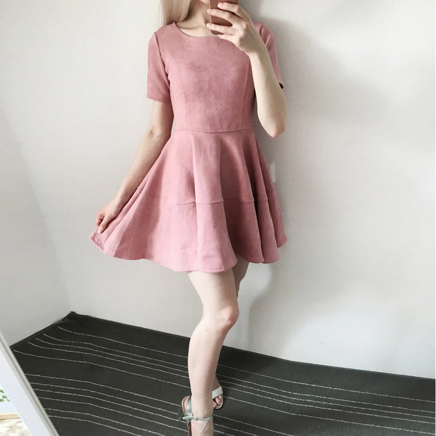New 2018 fashion summer blue pink Woman A-Line Dress Preppy Style Short sleeve o-neck Zippers mini dresses