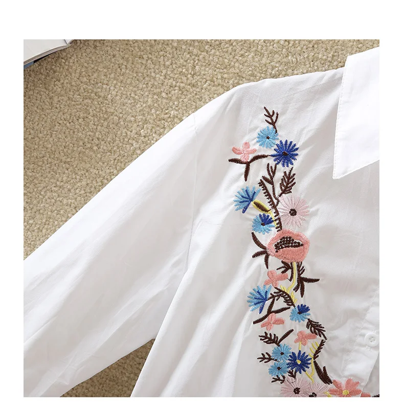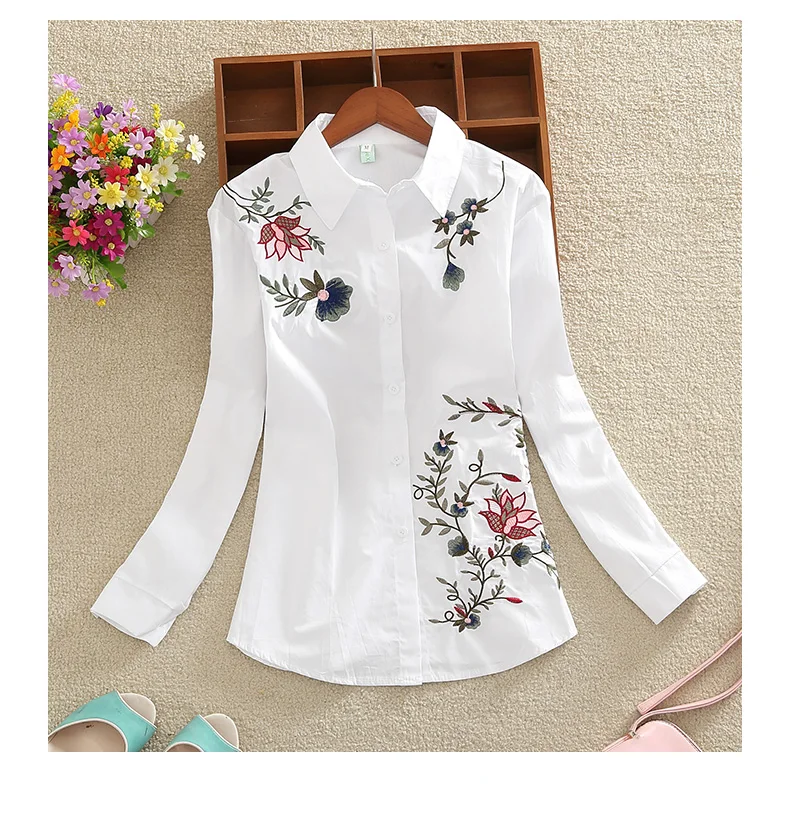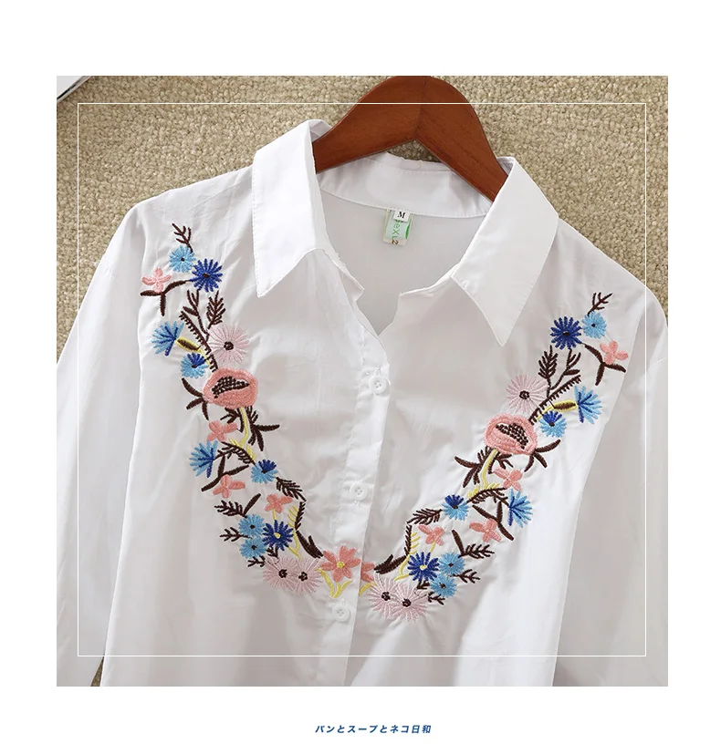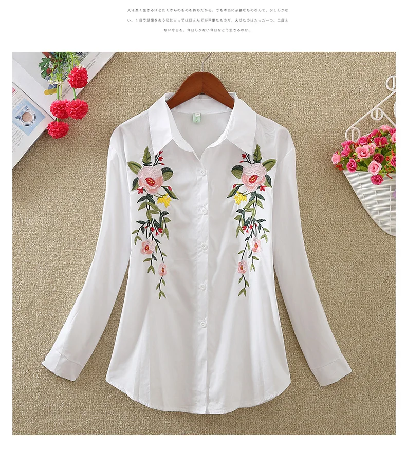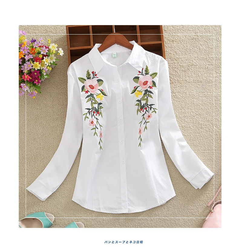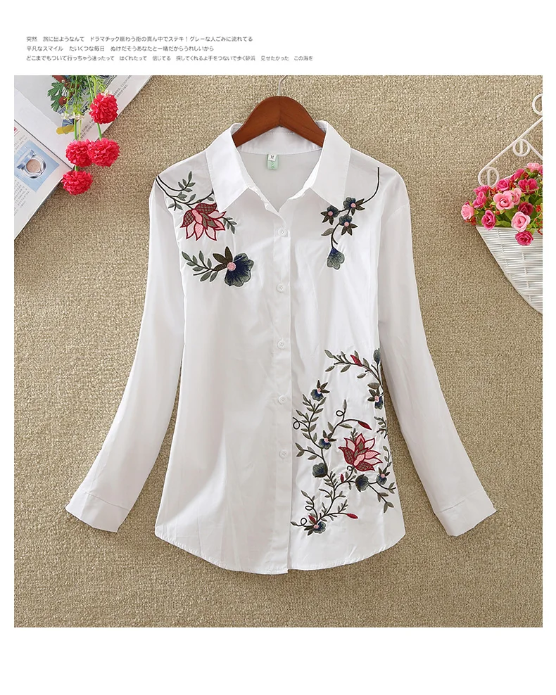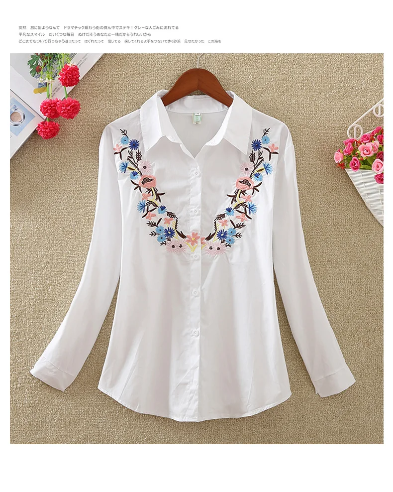 New 2018 long sleeve OL women shirts fashion large size casual loose flowers embroidered chiffon women blouse top blusas 20H 35