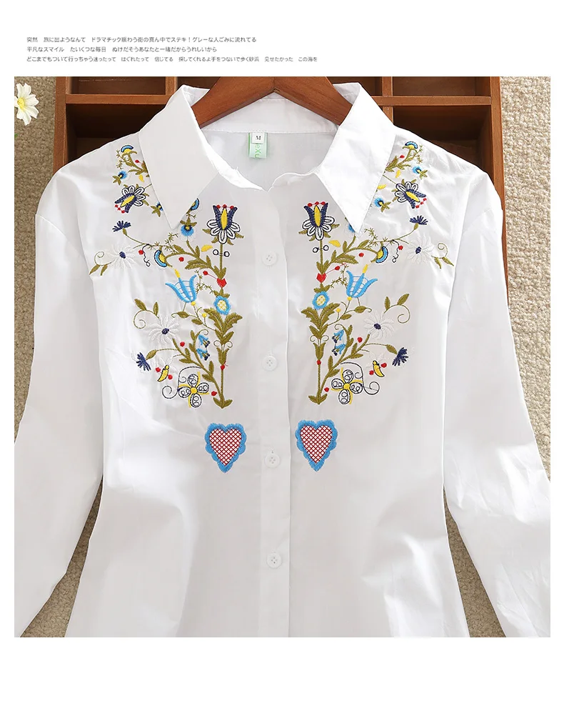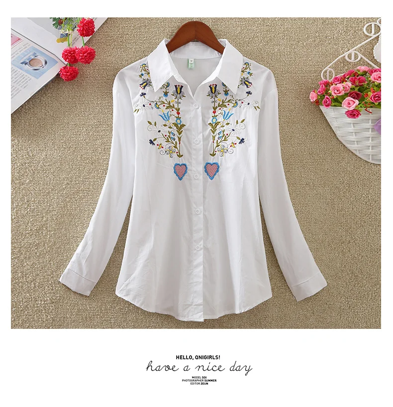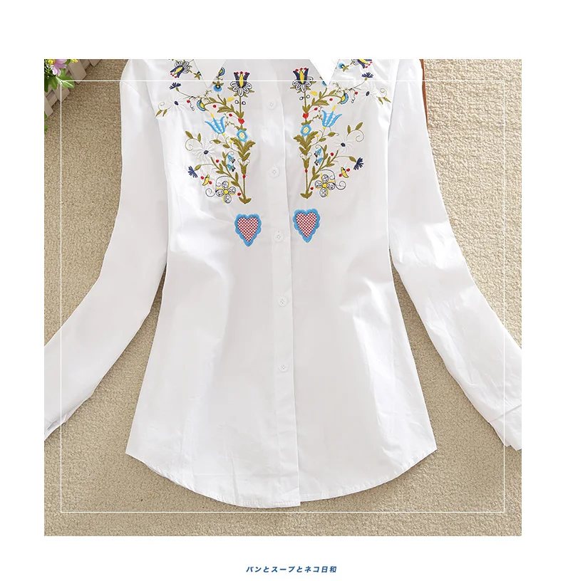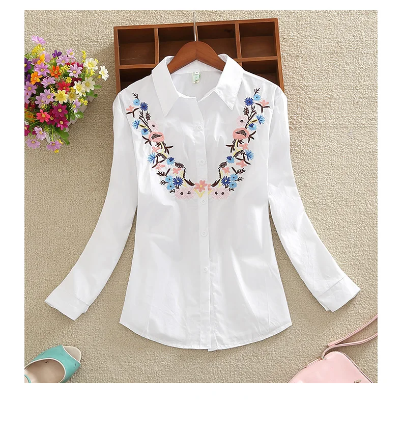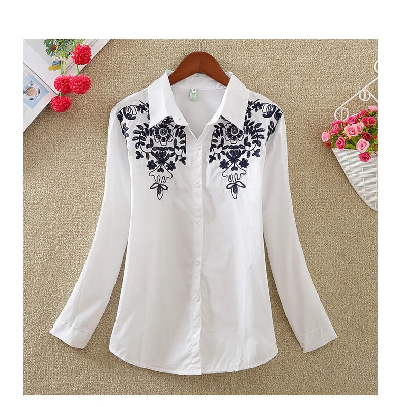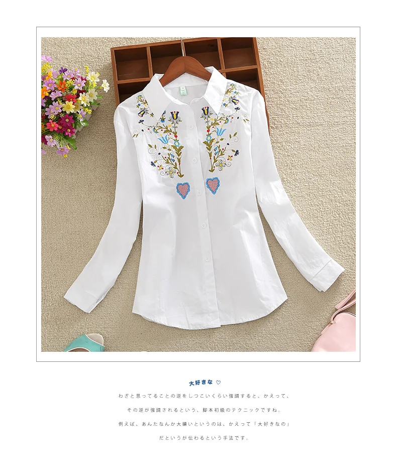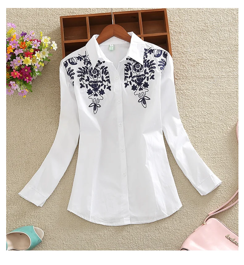 New 2018 long sleeve OL women shirts fashion large size casual loose flowers embroidered chiffon women blouse top blusas 20H 35