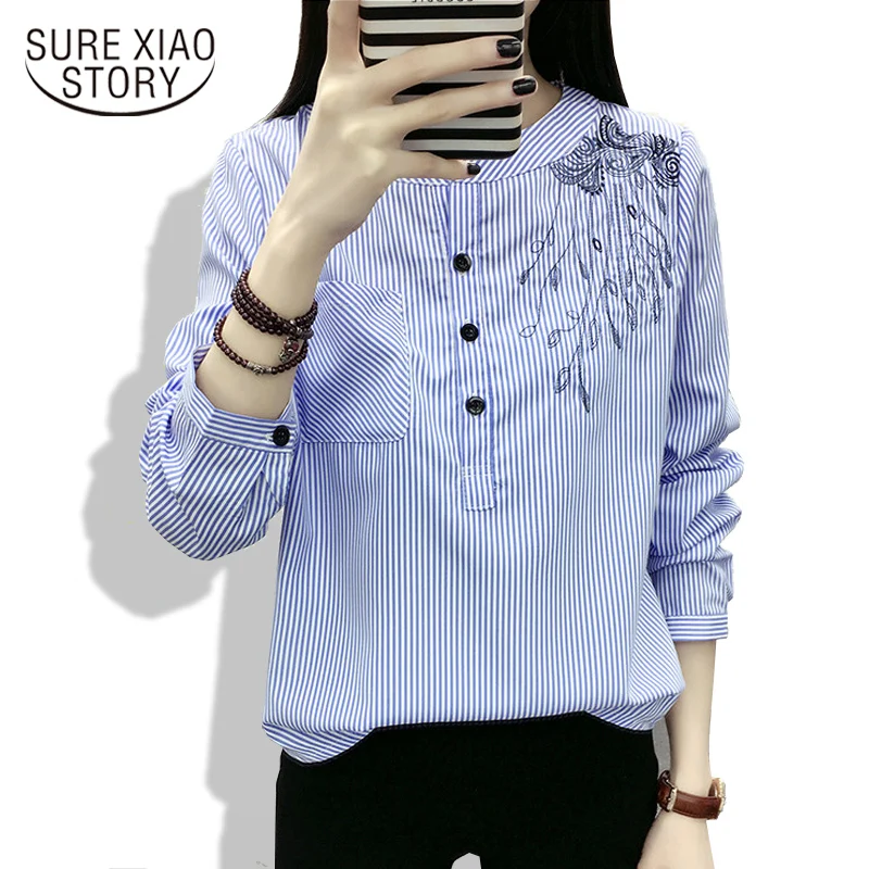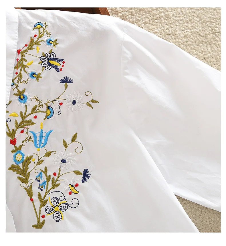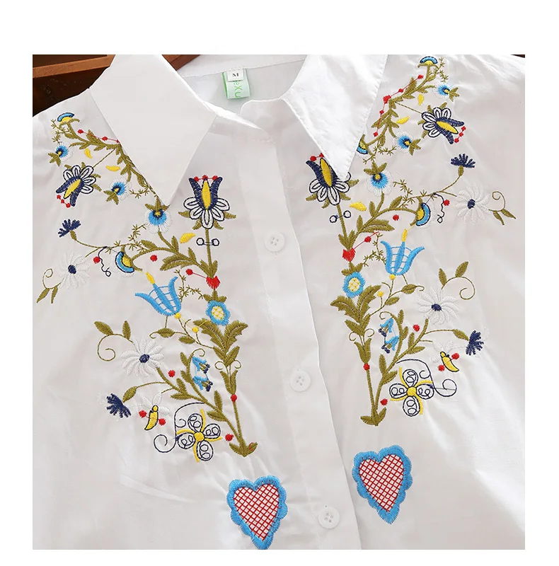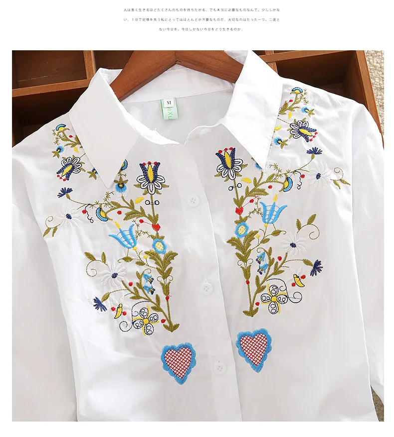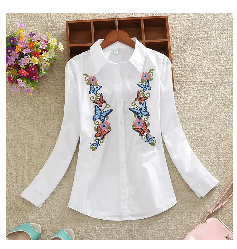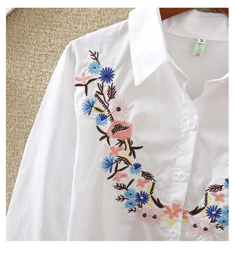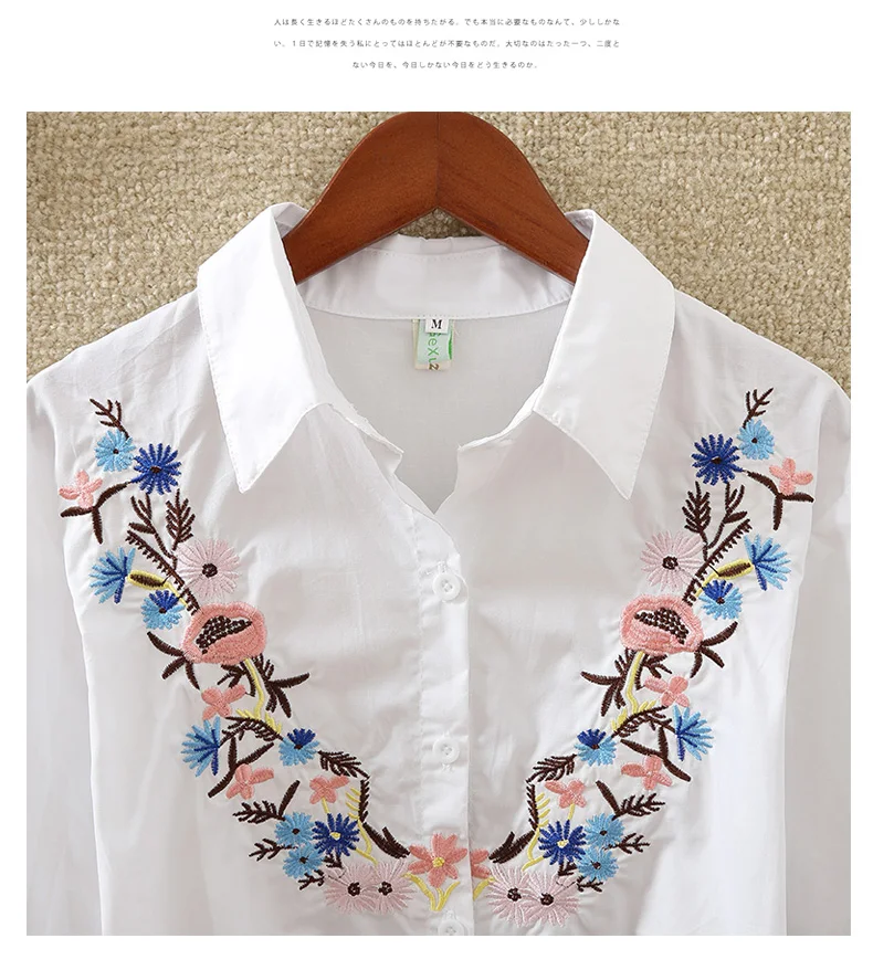 New 2018 long sleeve OL women shirts fashion large size casual loose flowers embroidered chiffon women blouse top blusas 20H 35