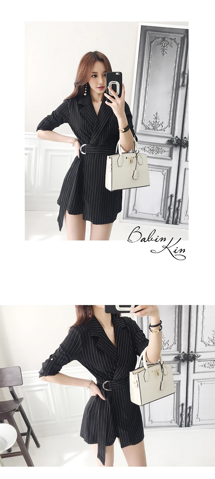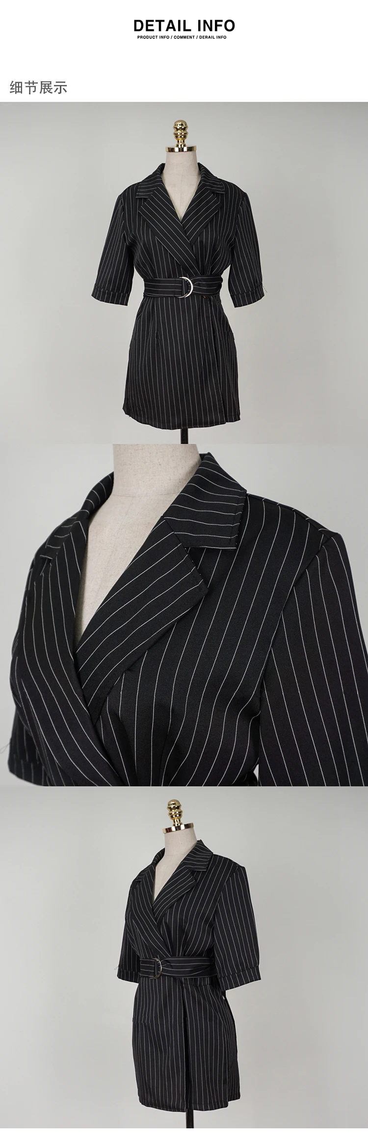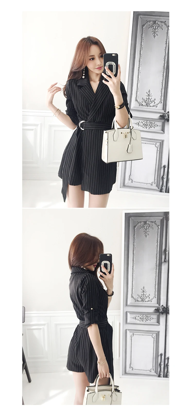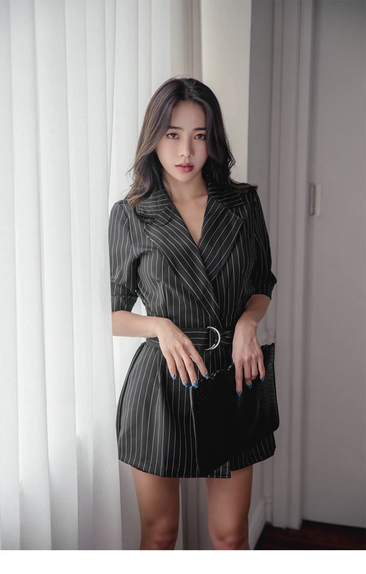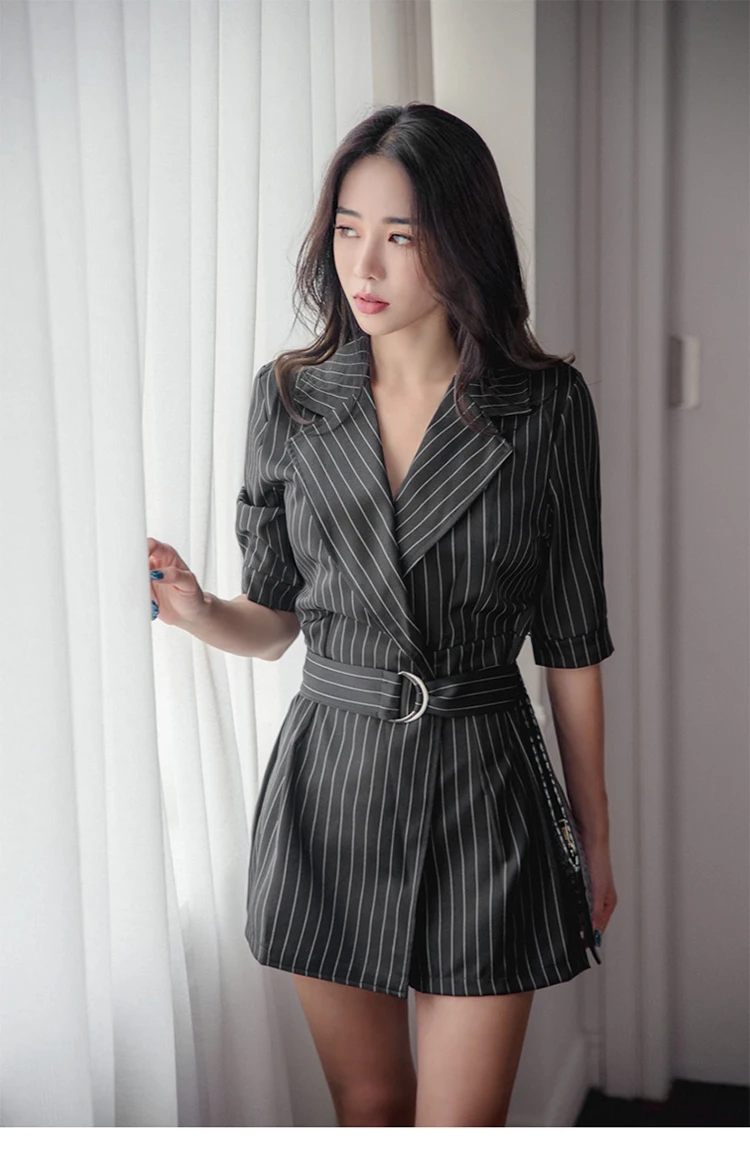 New 2018 Office Lady Jumpsuit Women Work Wear Black Striped Notched Playsuit With Sashes Overalls Rompers Women macacao S85795