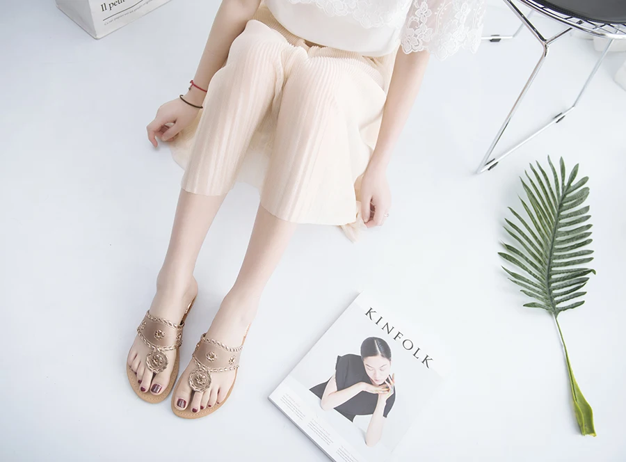 New 2018 Shoes Women Sandals Fashion Flip Flops Summer Style Hair ball Chains Flats Solid Slippers Sandal Flat Free Shipping