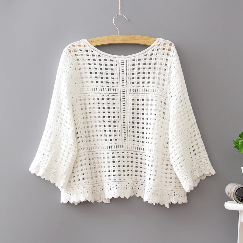 New 2018 Summer Kimono Casual Cardigan Fashion Sexy Hollow Out Lace Crocheted Retro Beach Blouses Elegant Women Tops CA8618