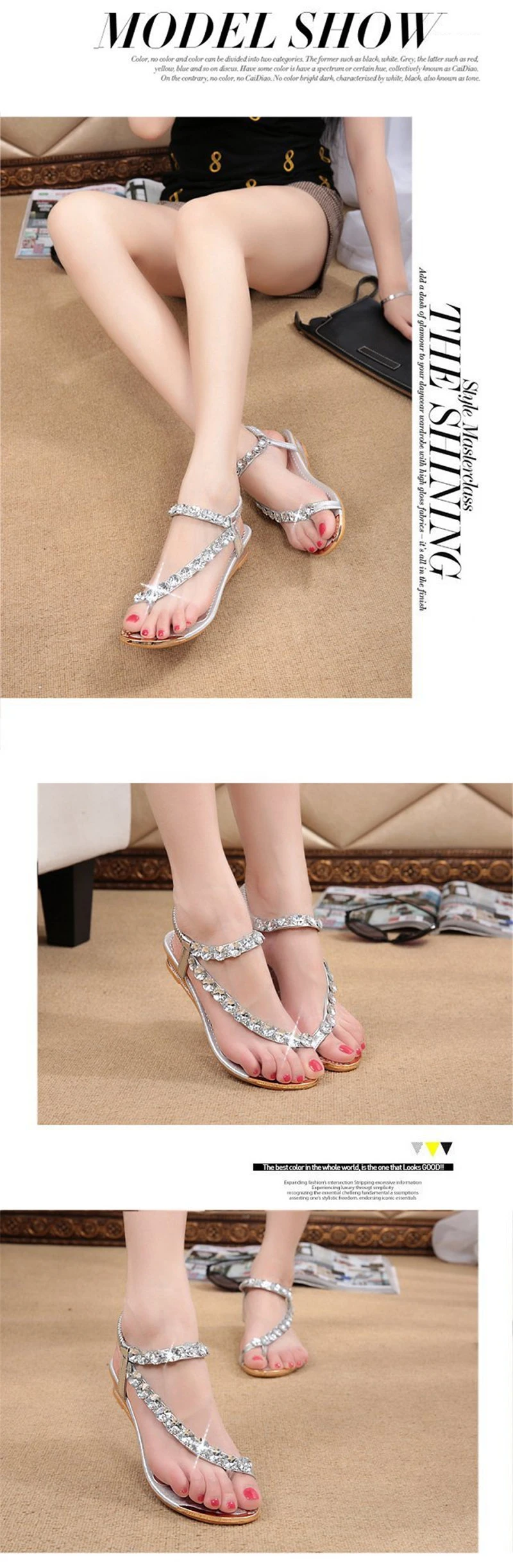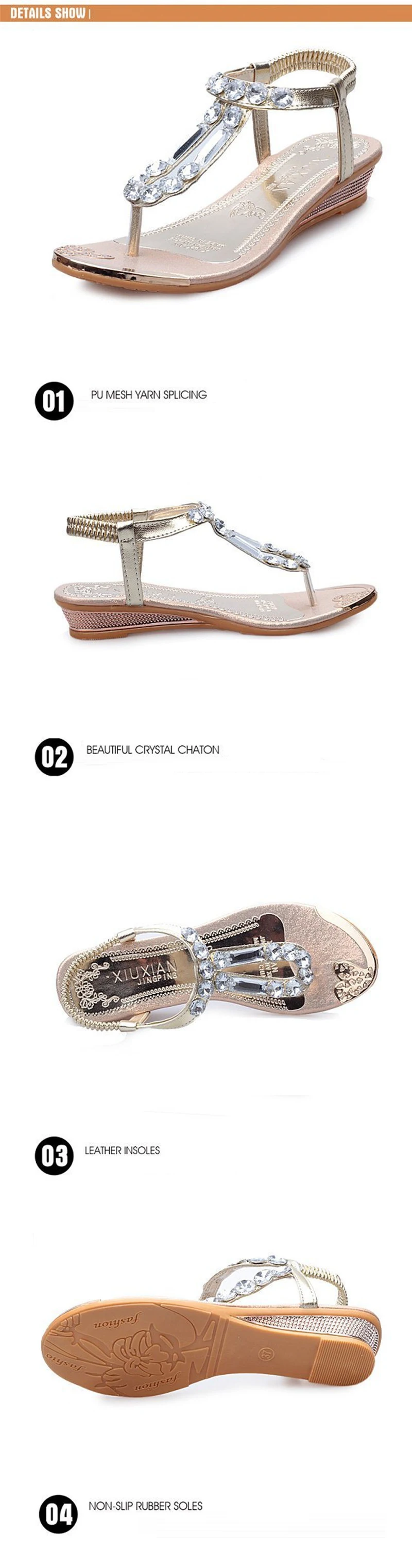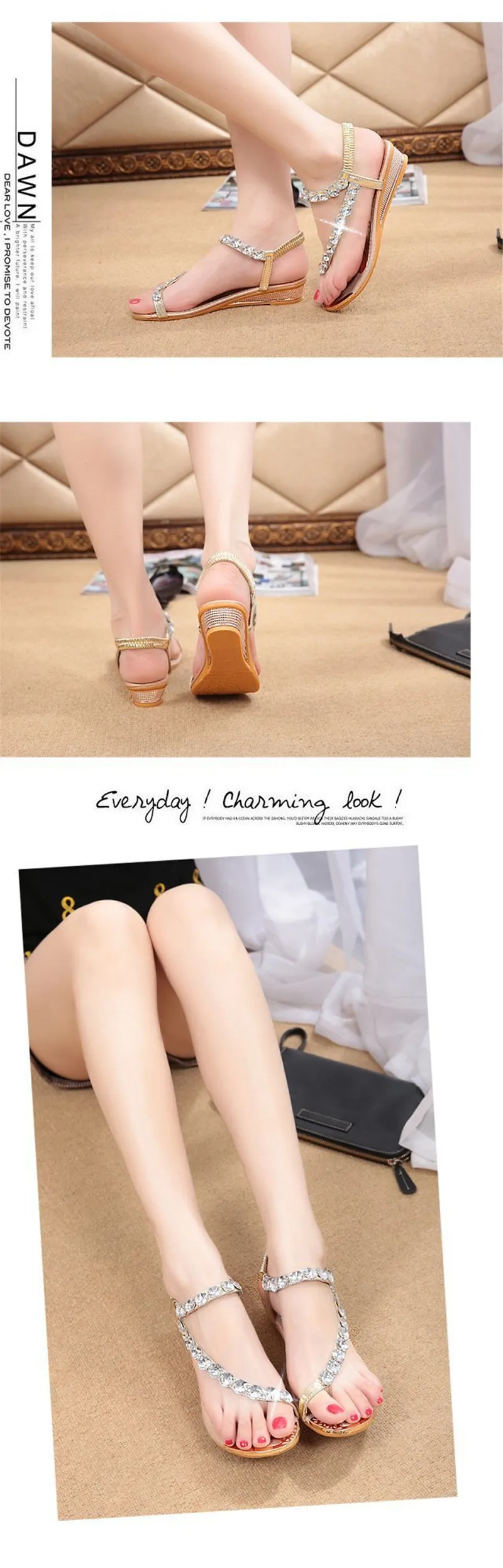 New 2018 Summer Women Sandals Breathable Shoes Crystal Rhinestone Crystal Sandals Female Flat Sandal Beach Shoes Woman JDD01