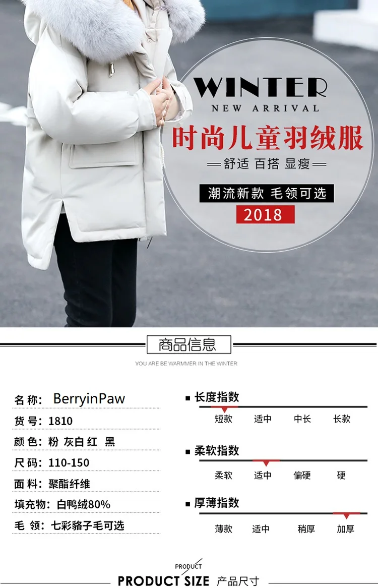 New 2018 winter down jacket parka for girls boys coats 80% down jackets children’s clothing for snow wear kids outerwear & coats