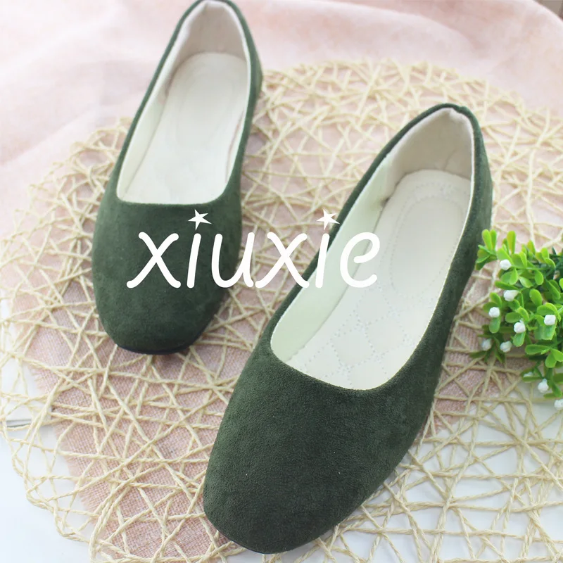 New 24 Color casual outdoor candy Women suede CASUAL work lady point toe slip round shoes Plus Size