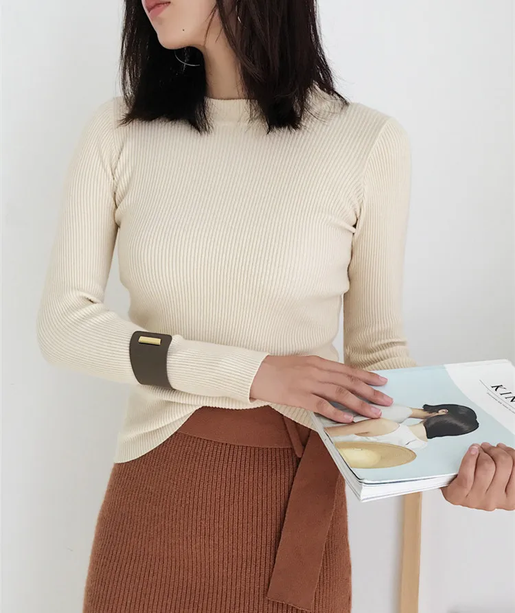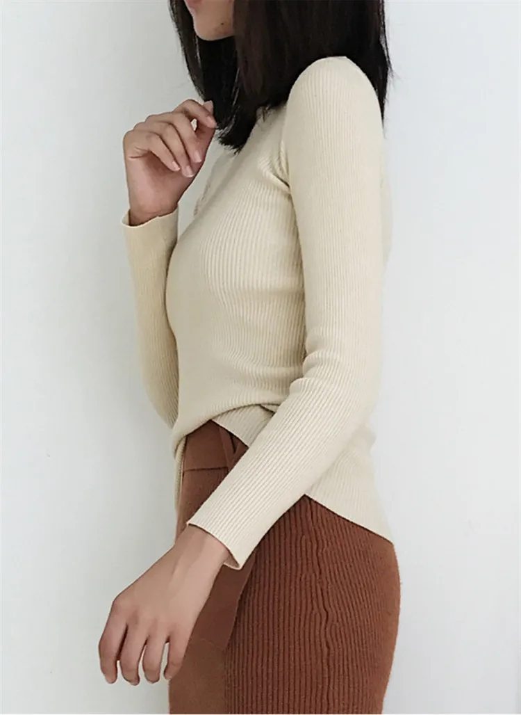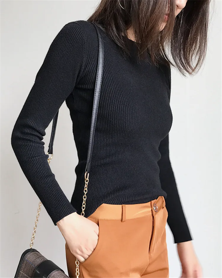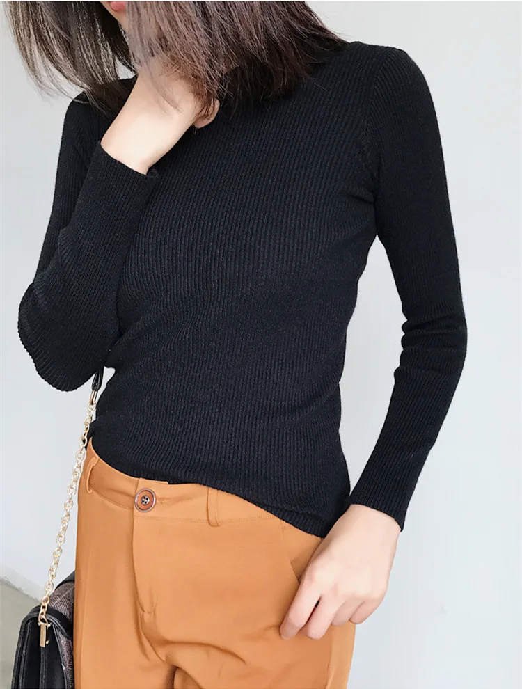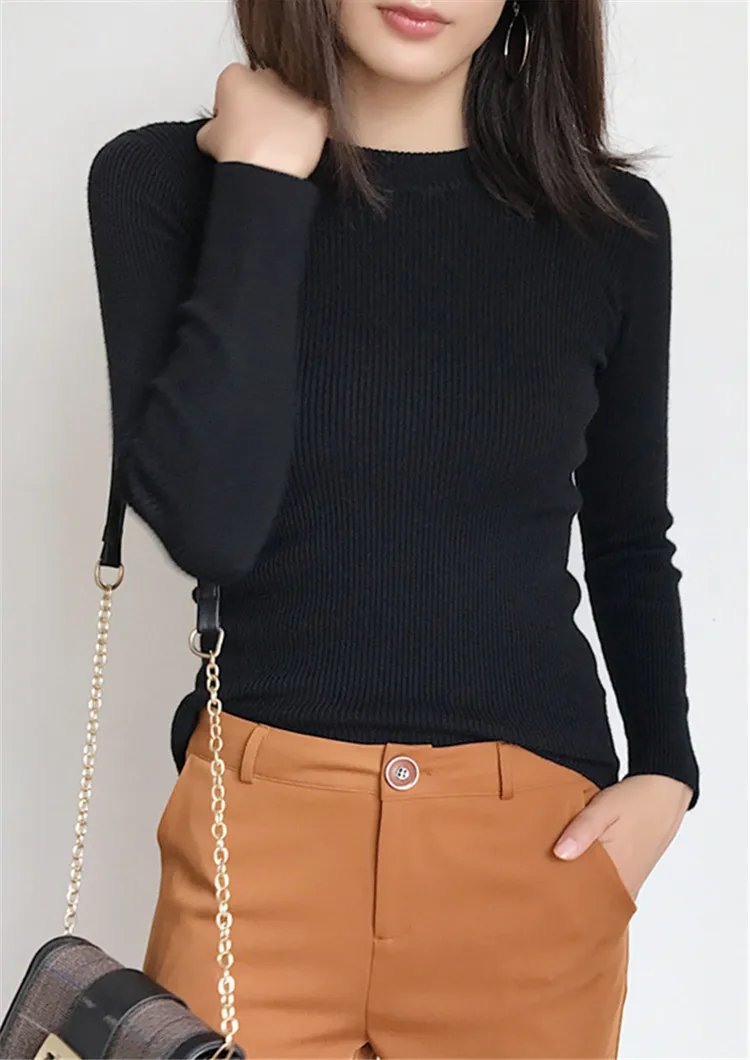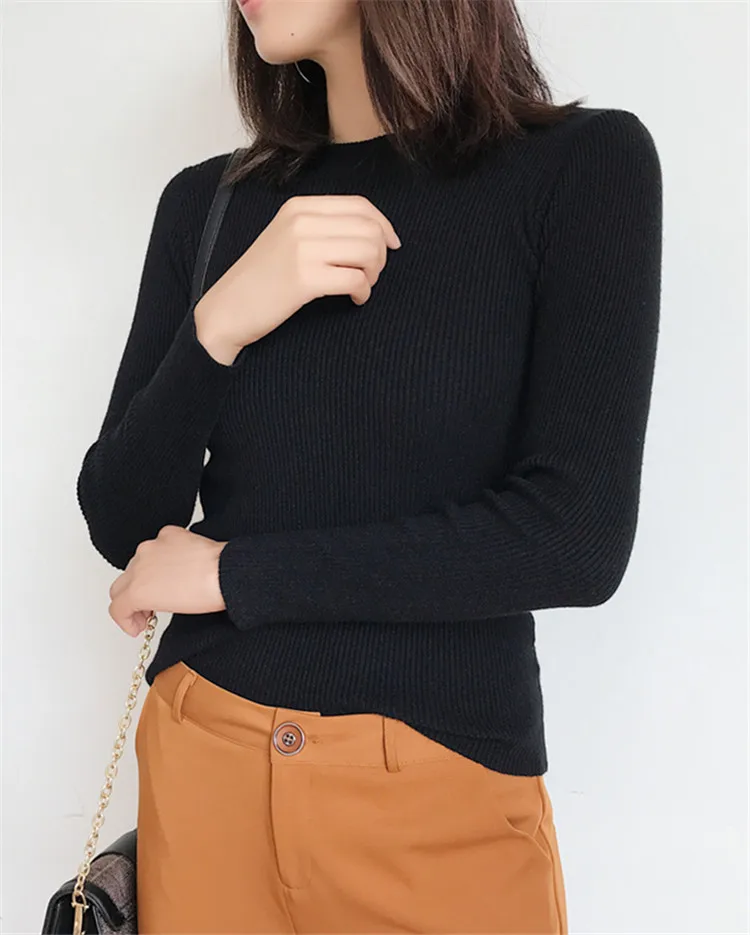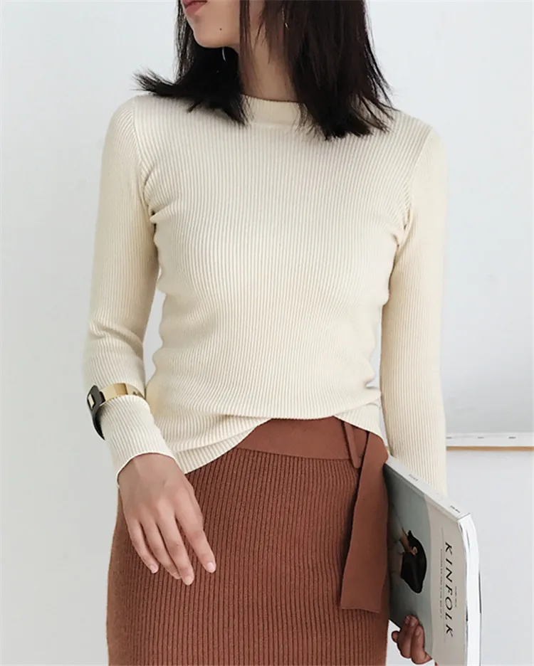 New 2019 Autumn Winter Women Bottoming Shirt Slim Fit Pullovers Sweater O Neck Office Ladies Mori Girl Casual Elegant SW1026