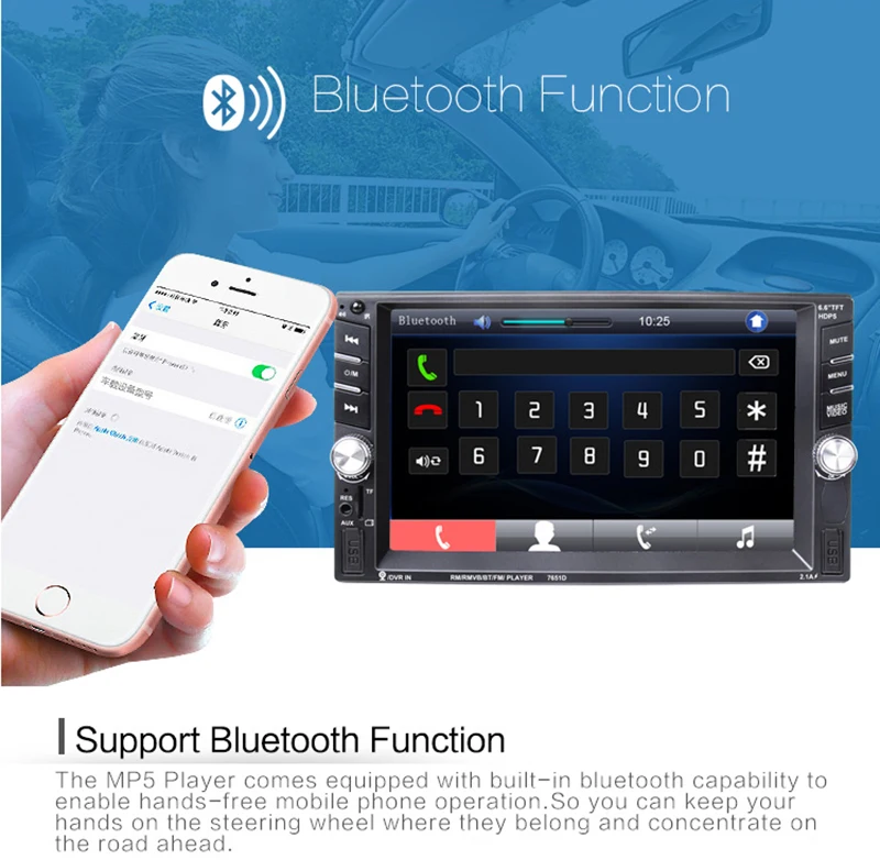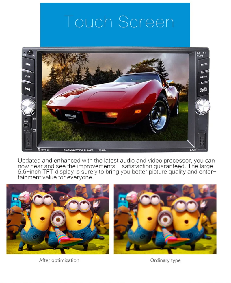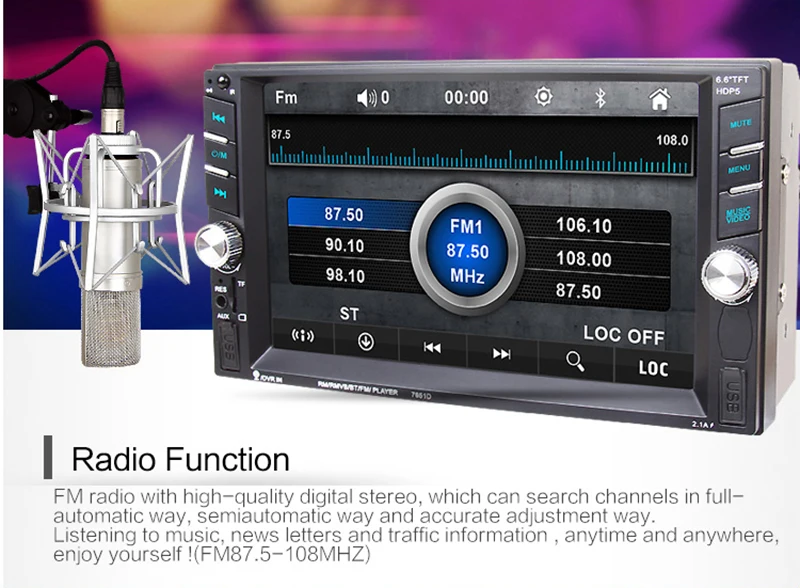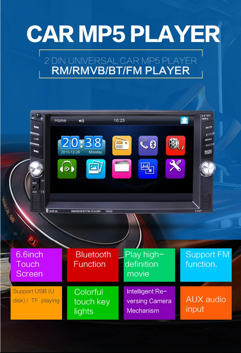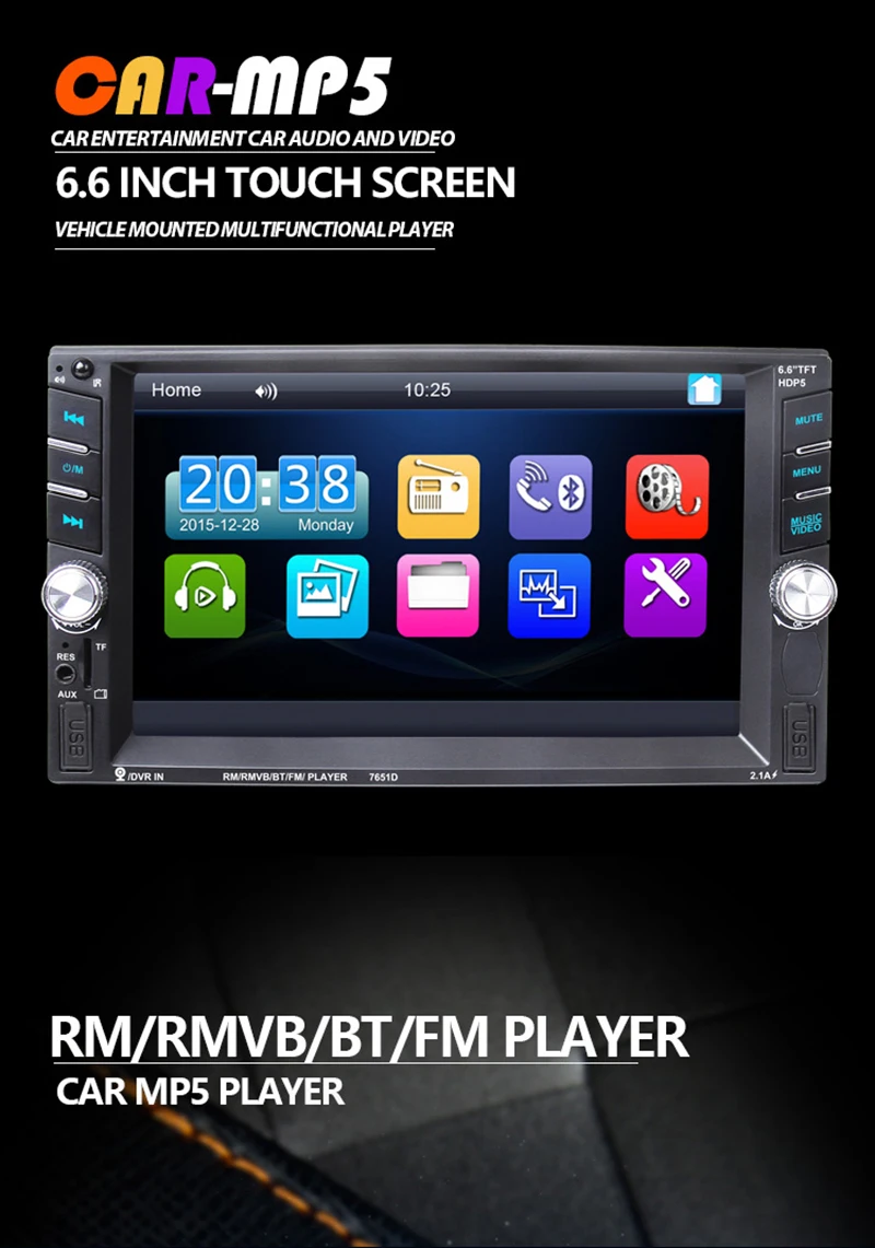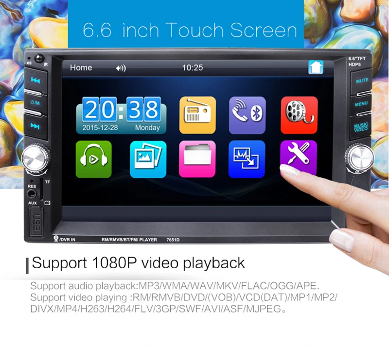 - 6.6inch 2 din HD car radio MP5 player with digital touch screen.